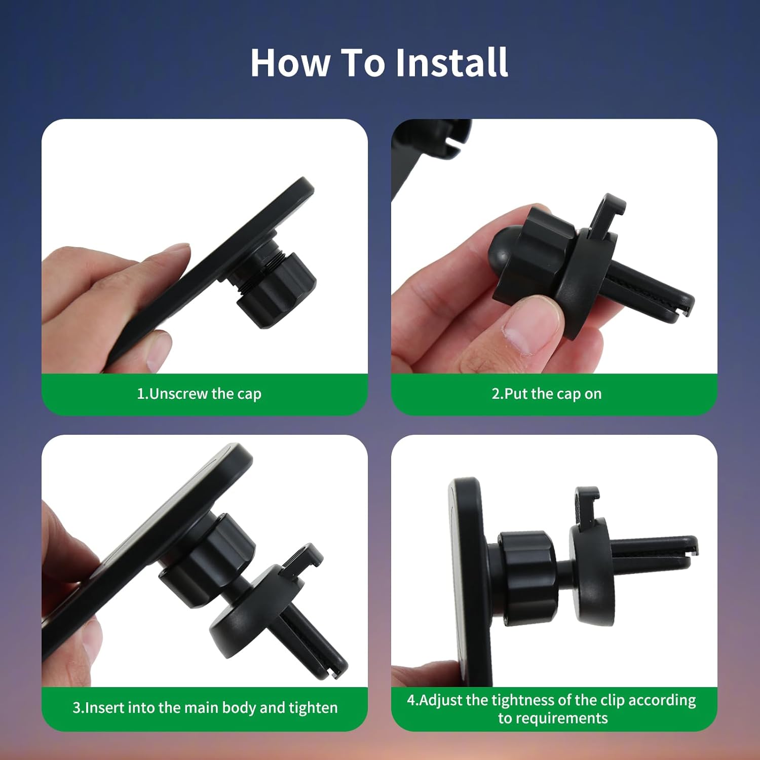 Easy Installation: This car charger bracket comes with a clamp base, which can be used for both horizontal and vertical air vents, and is not easy to fall off for better stability.