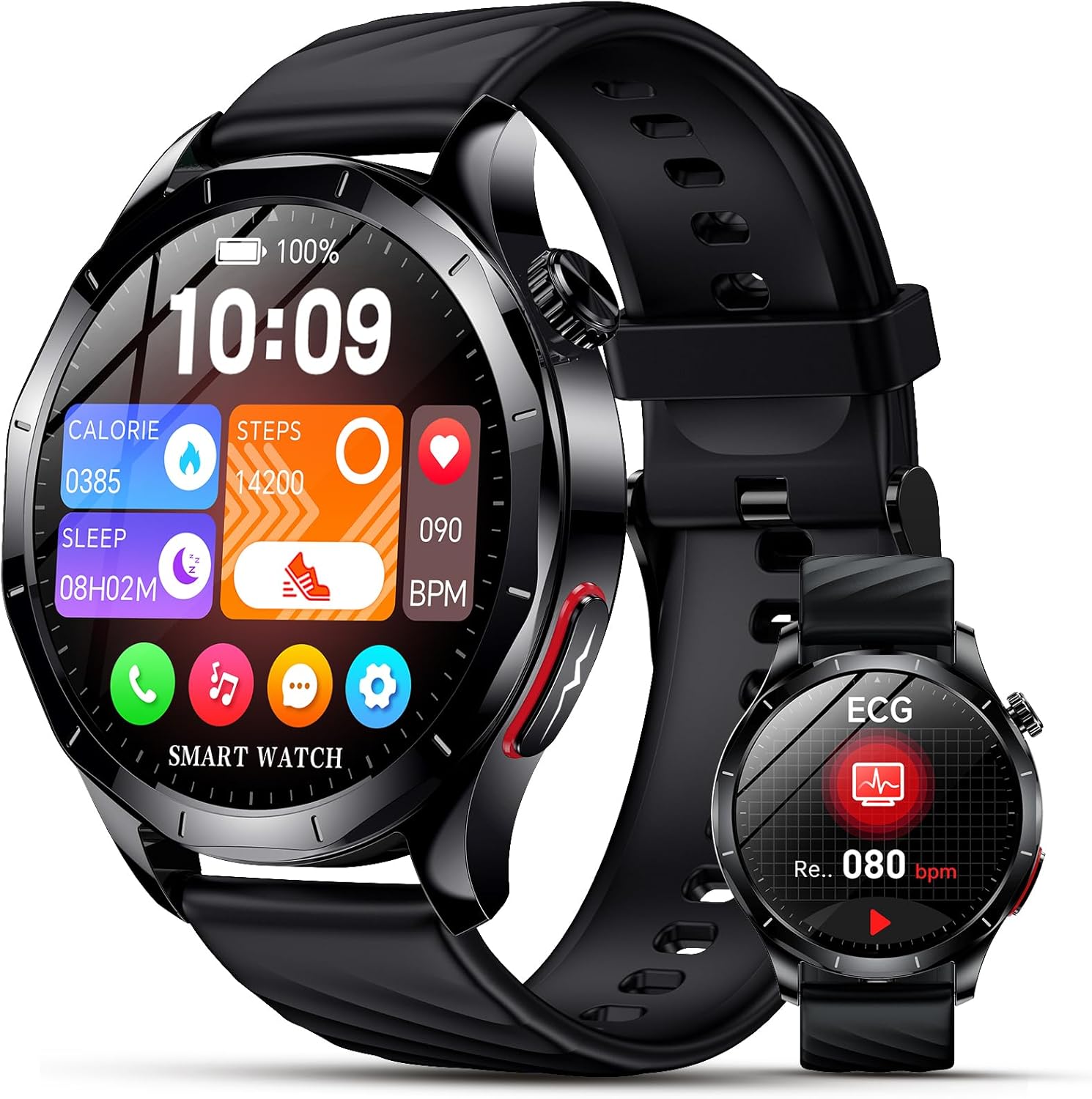 🏃♂️【120+ Activity Modes & IP68 Water Resistance】: This ECG smartwatch features built-in high-precision sensors to accurately track daily steps, distance, calories burned, exercise heart rate, and more. It also monitors metabolic equivalent (MET) values in real time, helping you precisely assess training intensity. Additionally, this men’s smartwatch boasts IP68 water resistance for everyday wear. (Not recommended for use in hot water, swimming, or diving.)