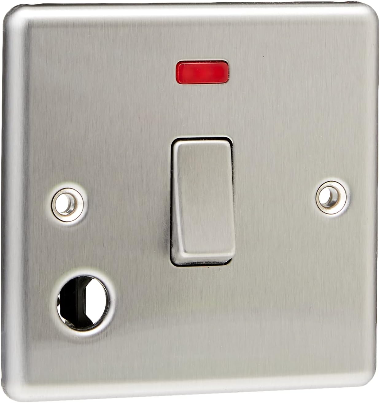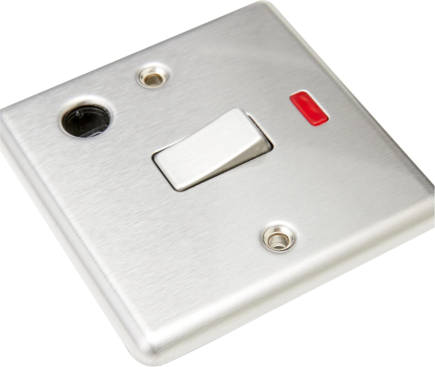 20A 1G DP Switch with Neon & Flex Outlet – Rounded Edge Brushed Chrome