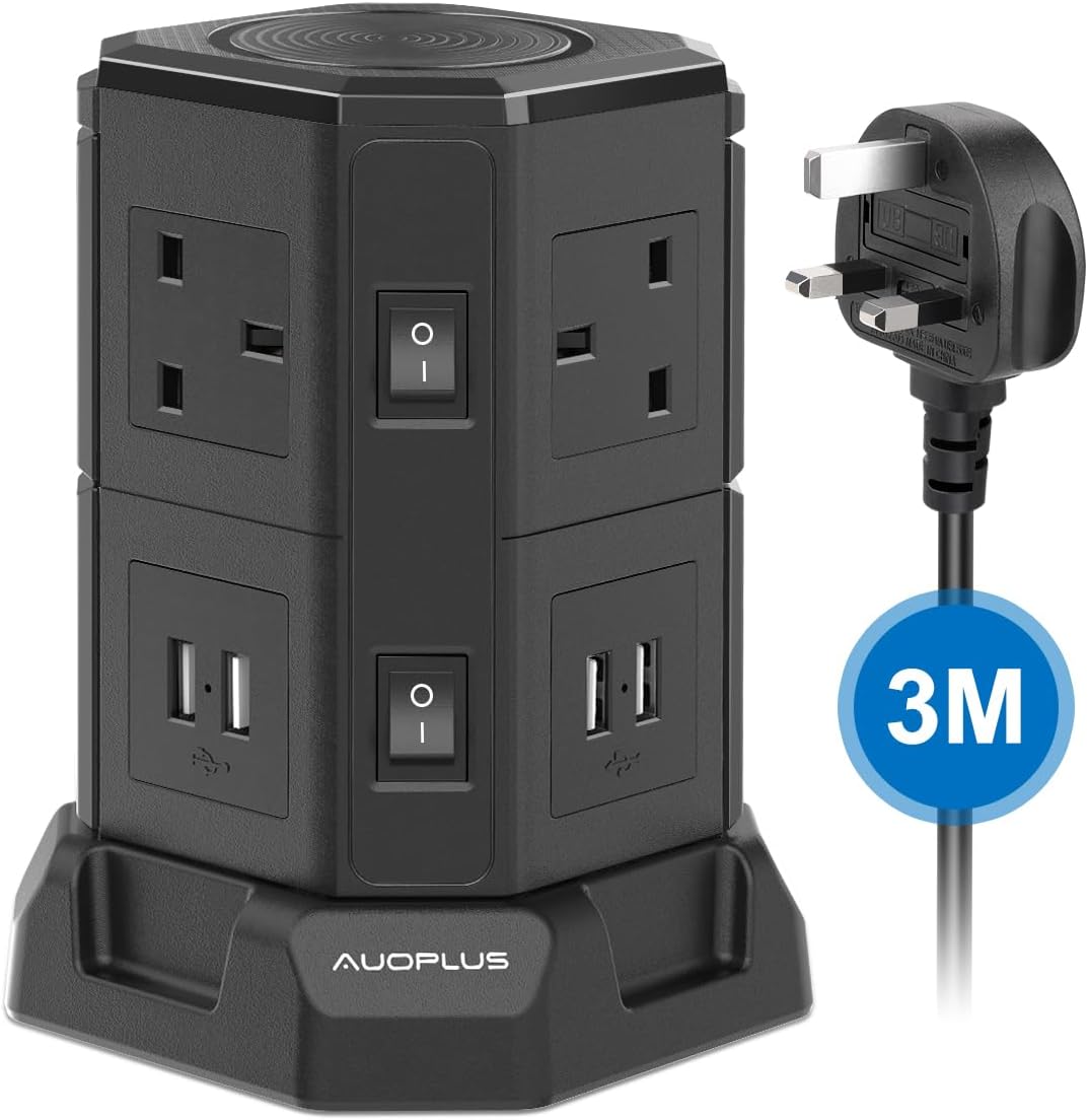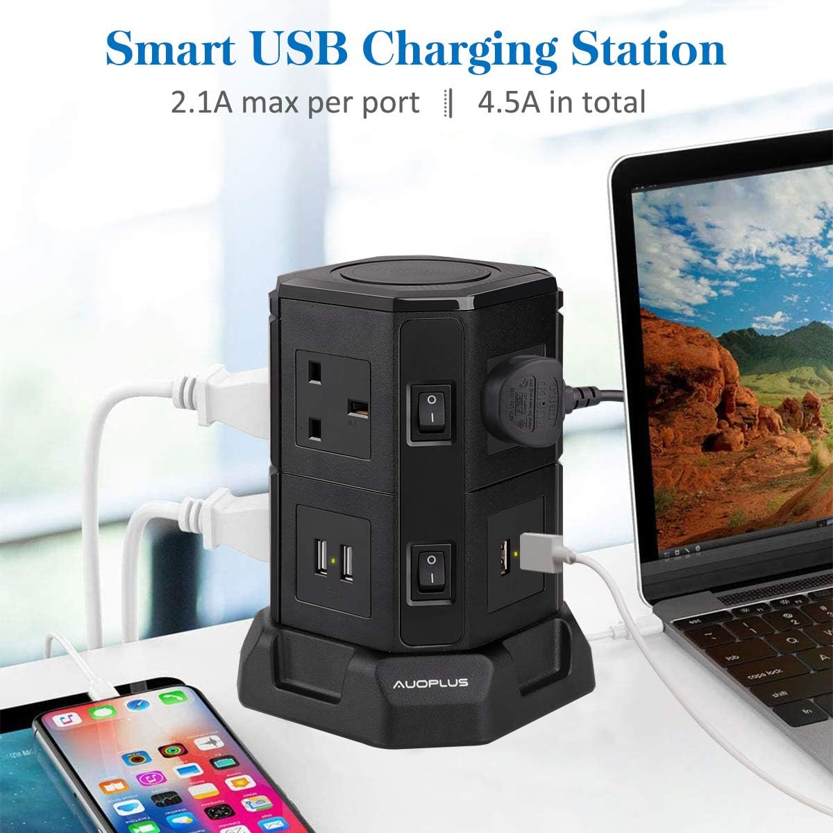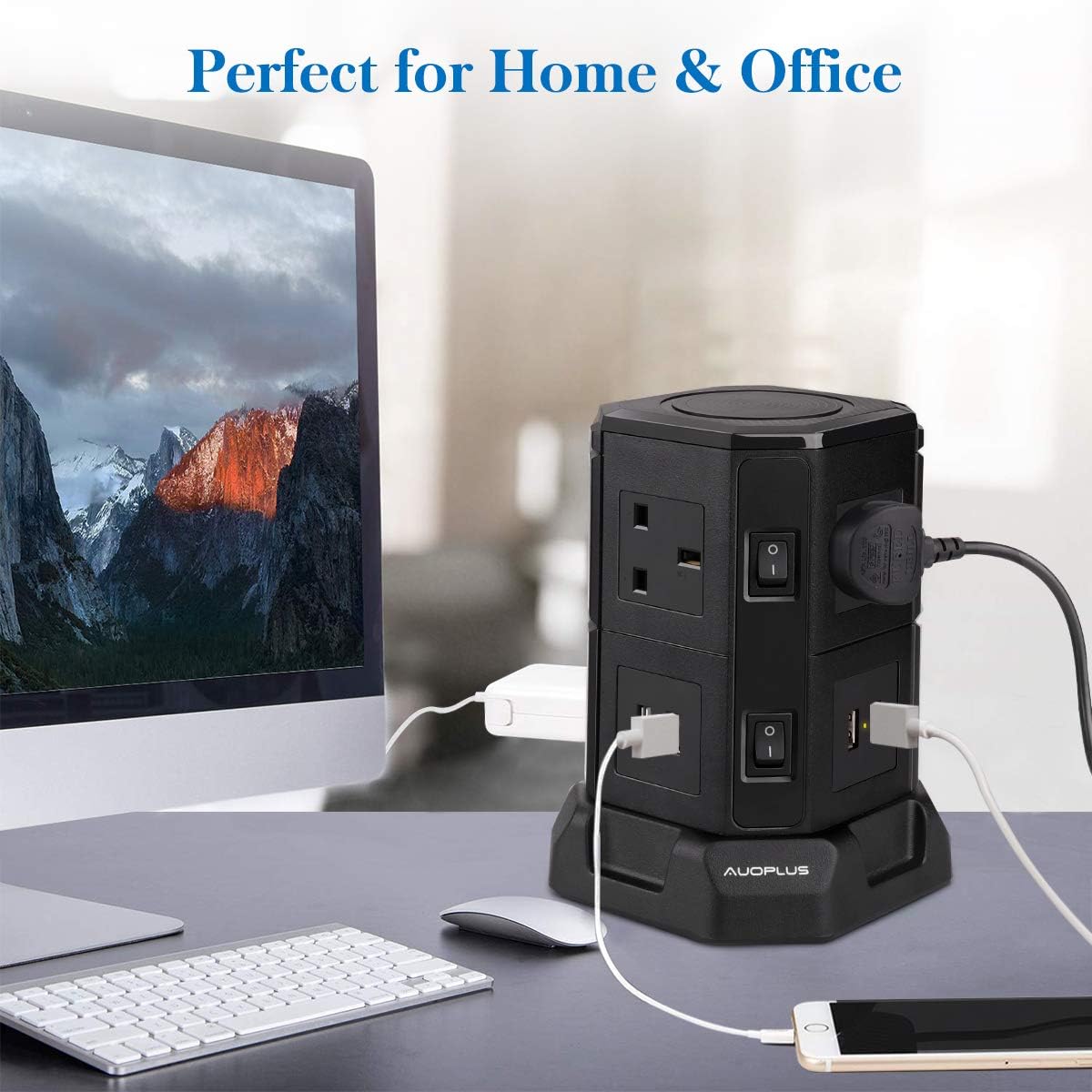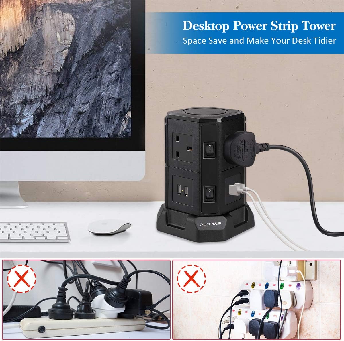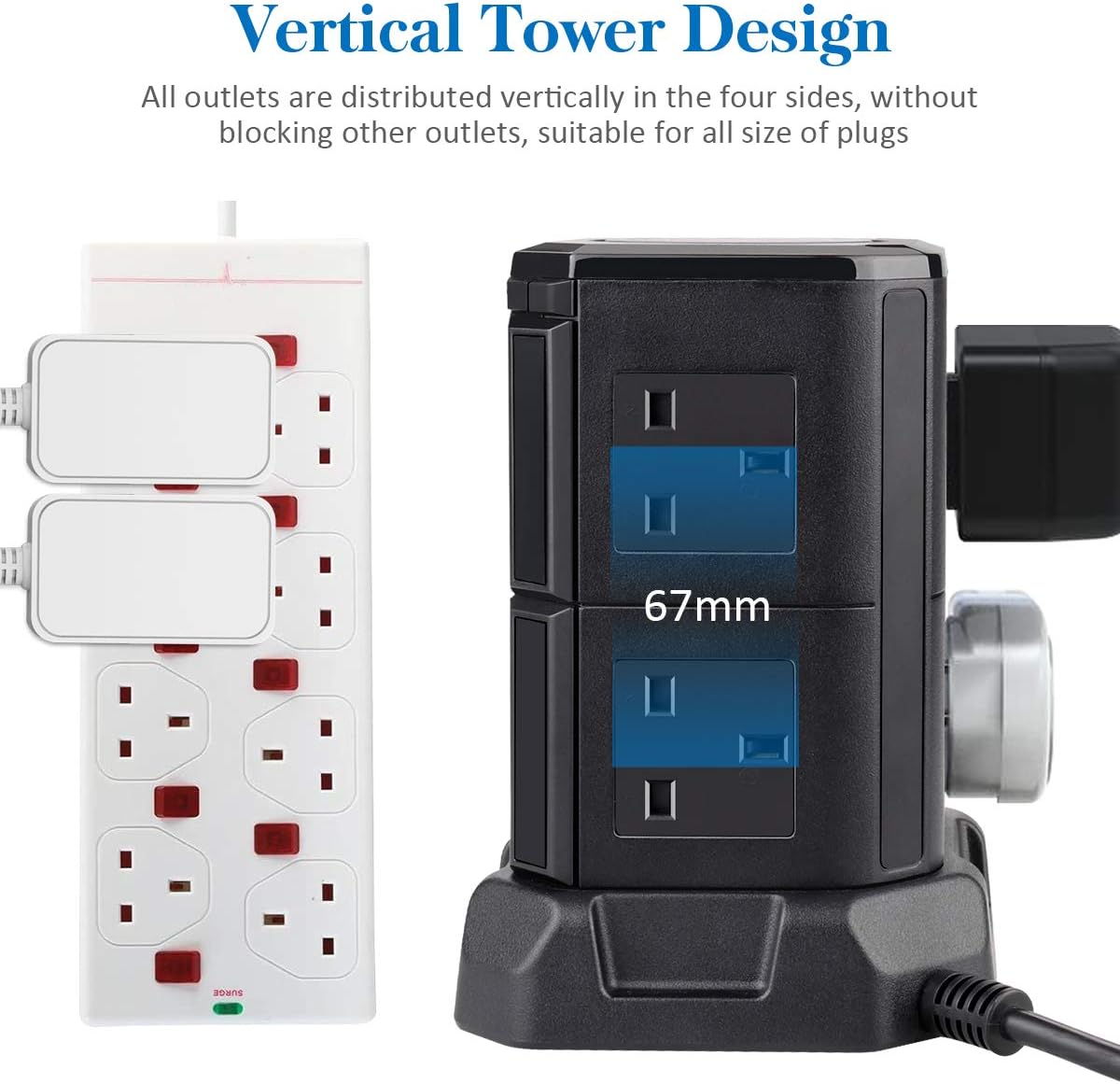 📣 Space-Saving Design – The extension cable all outlets and ports are distributed vertically in the four sides of the mains extension lead, providing enough space between each outlet that accommodate larger power adapters, without blocking other outlets, the charging station is designed to keep cables neat and tangle-free