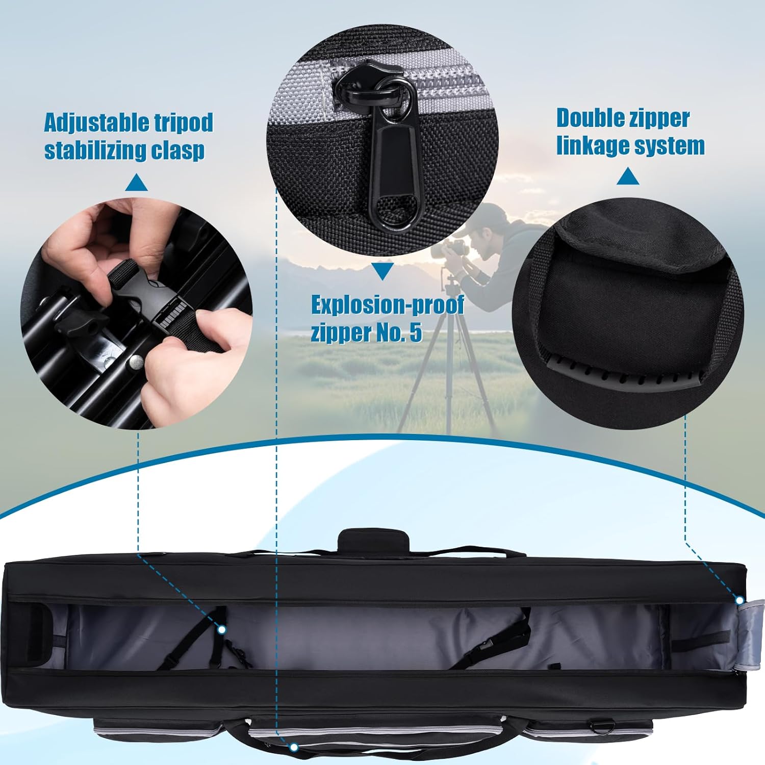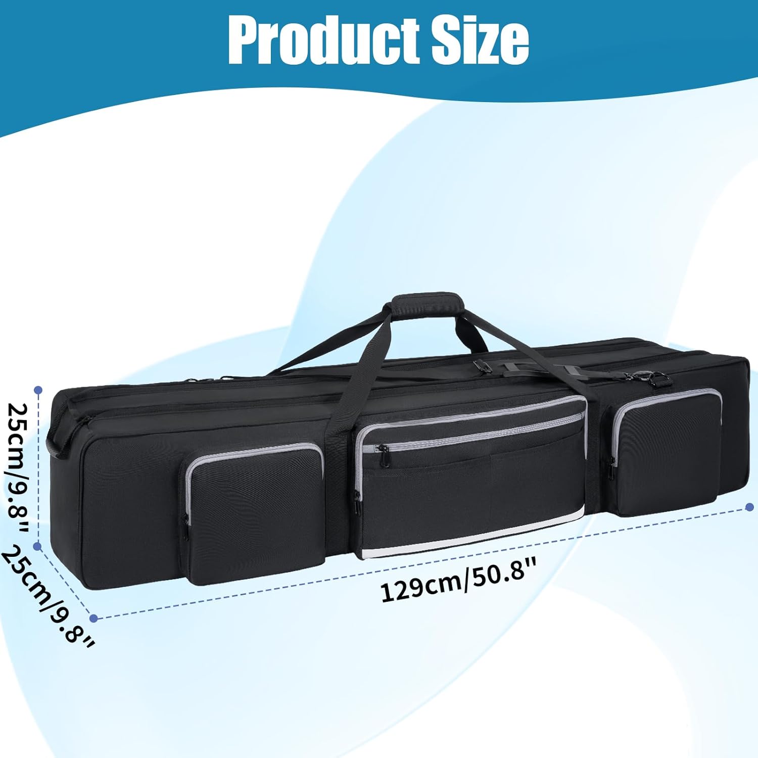 【Tripod Case 129*25*25CM】Safely store tripods, light stands, and gear up to 129cm (50.8″) in length, with a 25cm-wide interior accommodating monopods, LED panels, umbrellas, and accessories—perfect for photographers needing organised, all-in-one transport solutions.