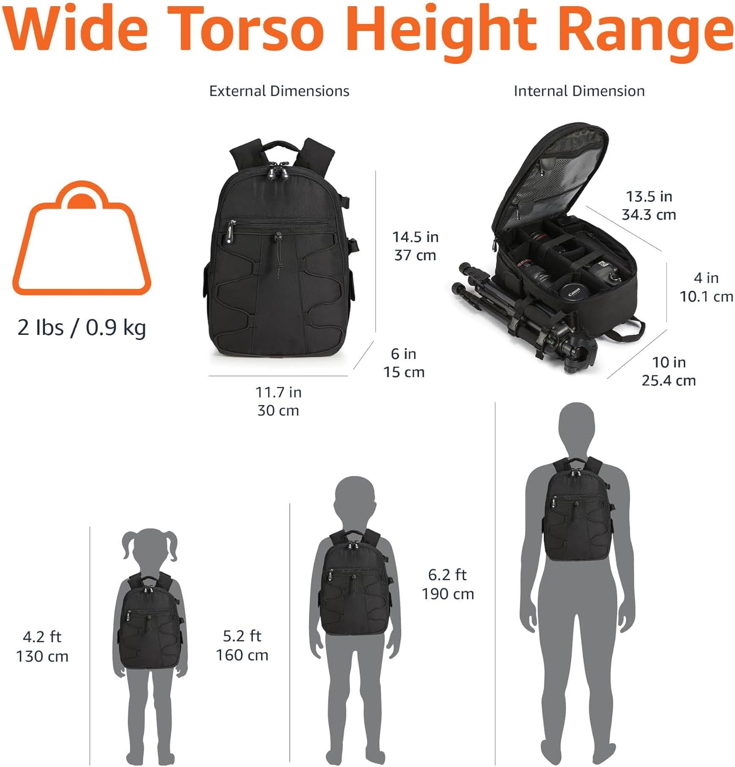 DIMENSIONS: Measures 11.7 x 6.00 x 14.5 inches (29.7 x 15.2 x 36.8 cm), providing ample space for your photography gear without adding unnecessary bulk.