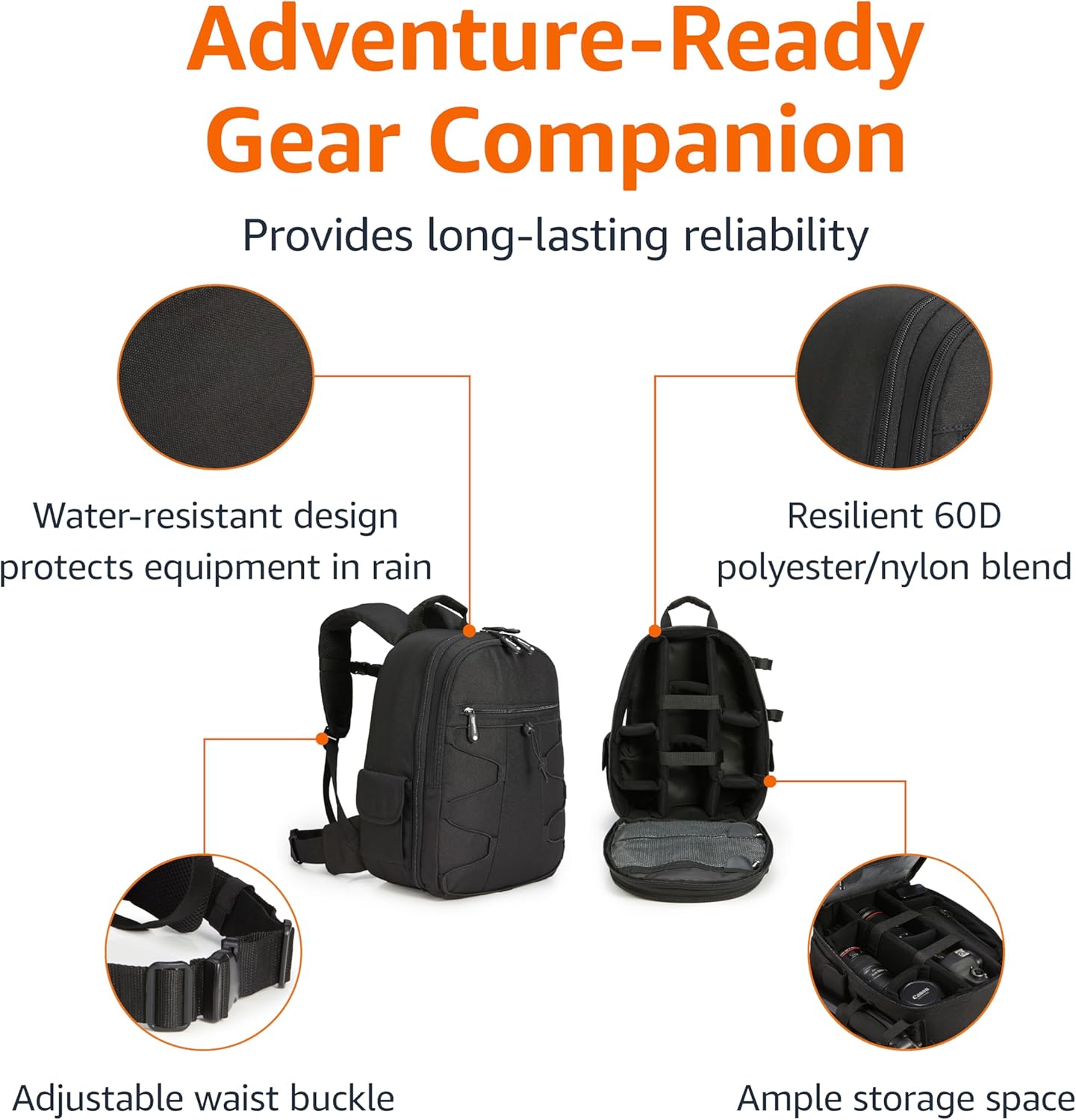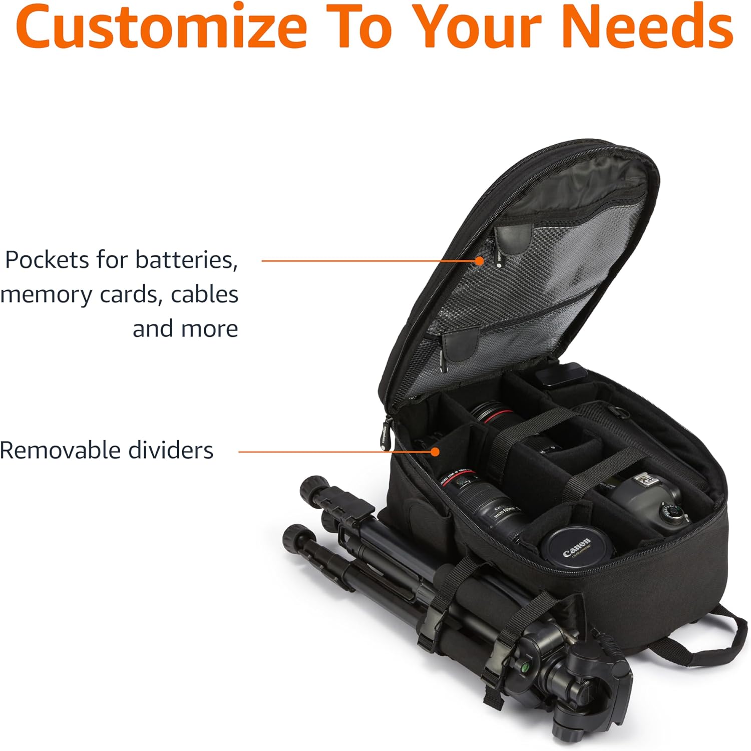 ORGANIZED STORAGE: Features a dedicated pocket for accessories, keeping essentials like batteries, memory cards, and cables easily accessible and neatly organized.