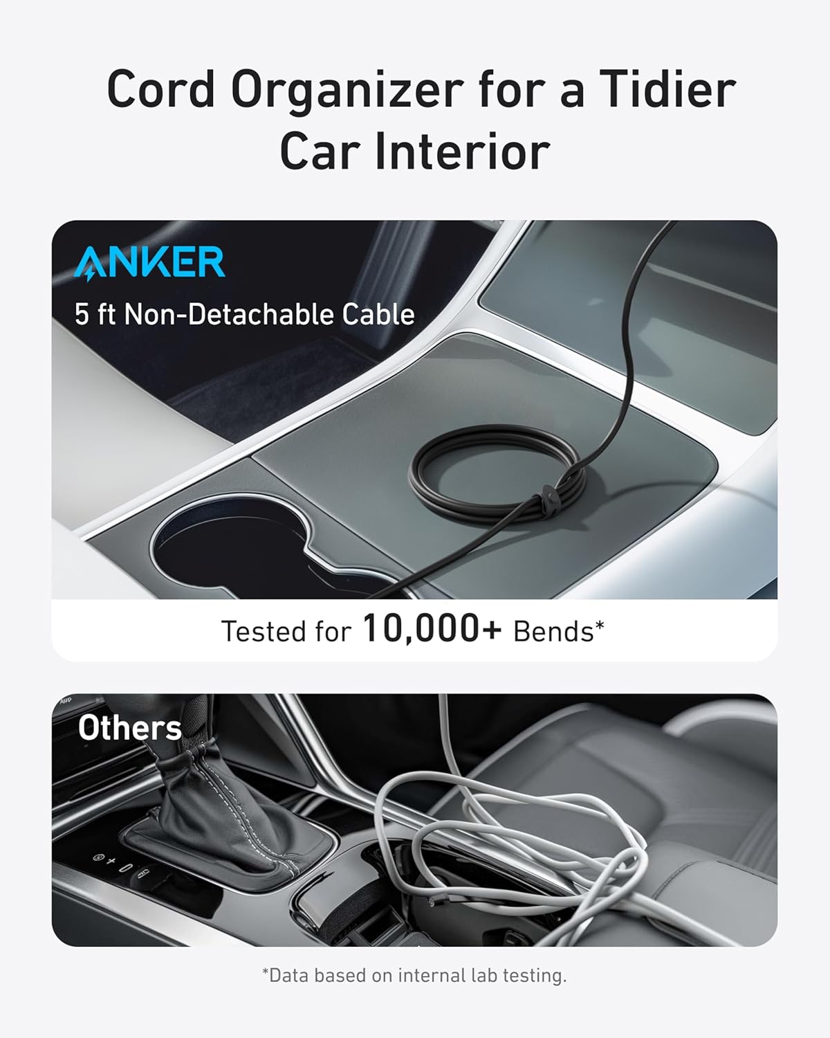 What You Get: Anker MagGo Wireless Car Charger (Pad, Built-In USB-C Cable), 5 ft USB-C to USB-C cable, 25W USB-C adapter, cord organizer, welcome guide, 18-month warranty, and our friendly customer service.