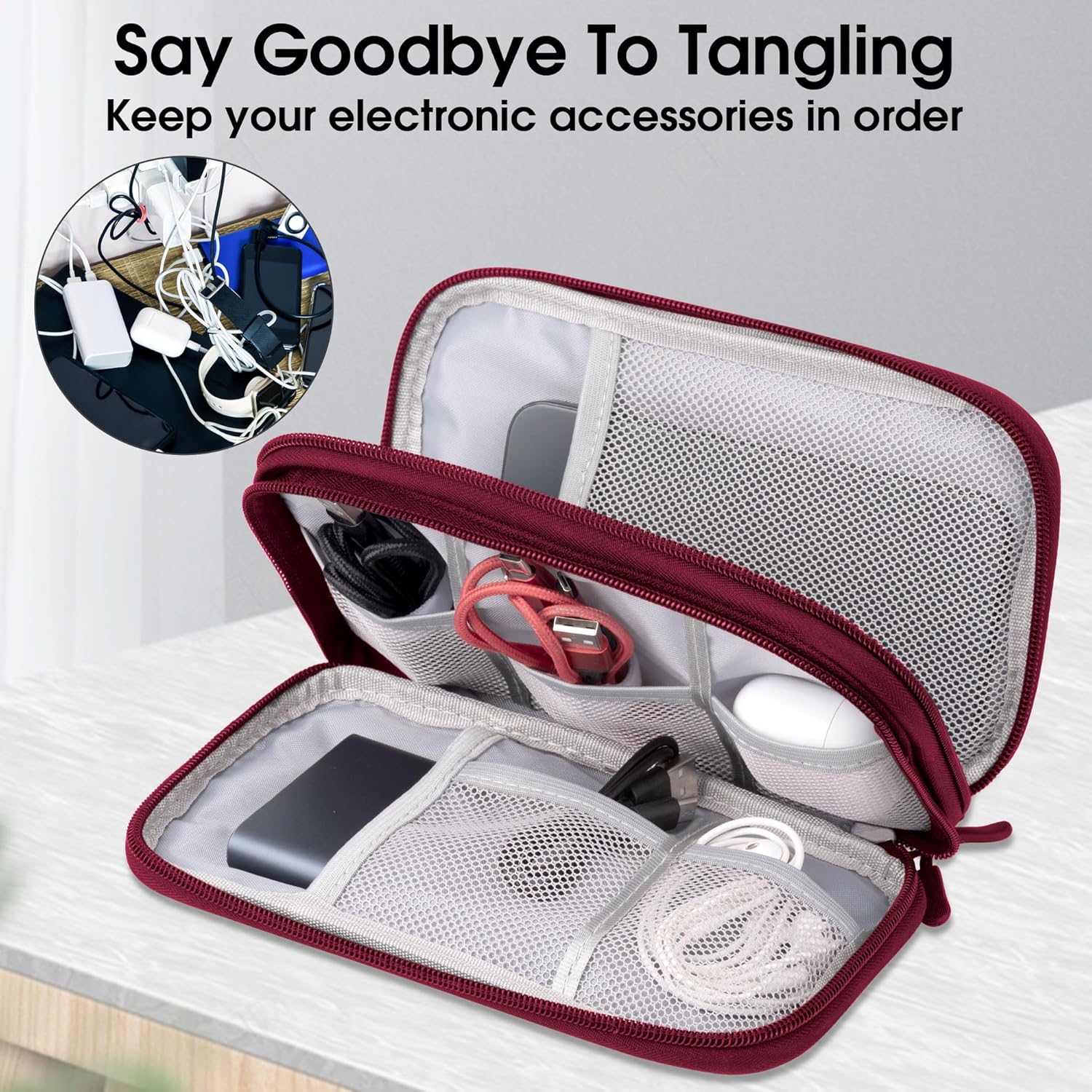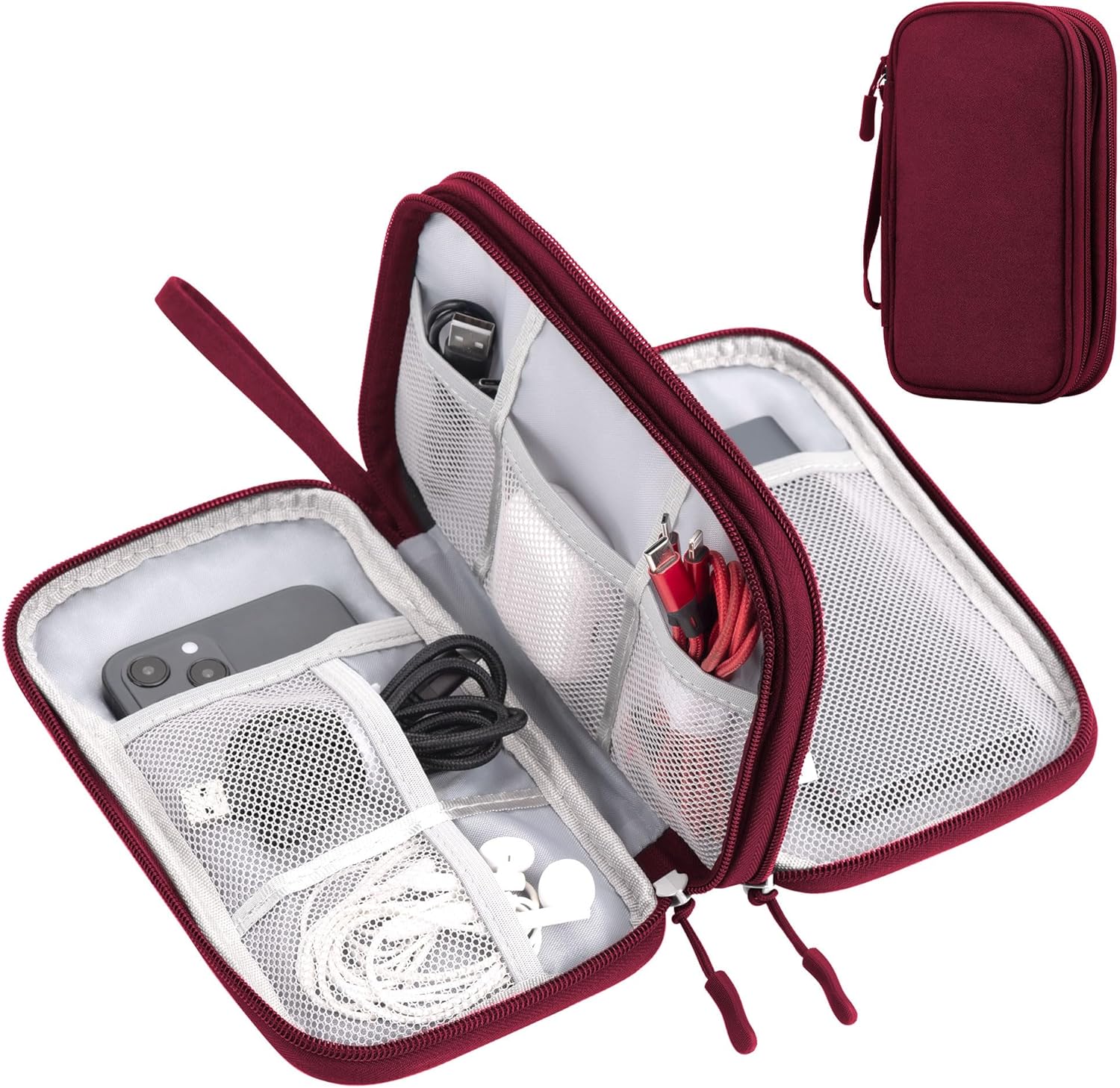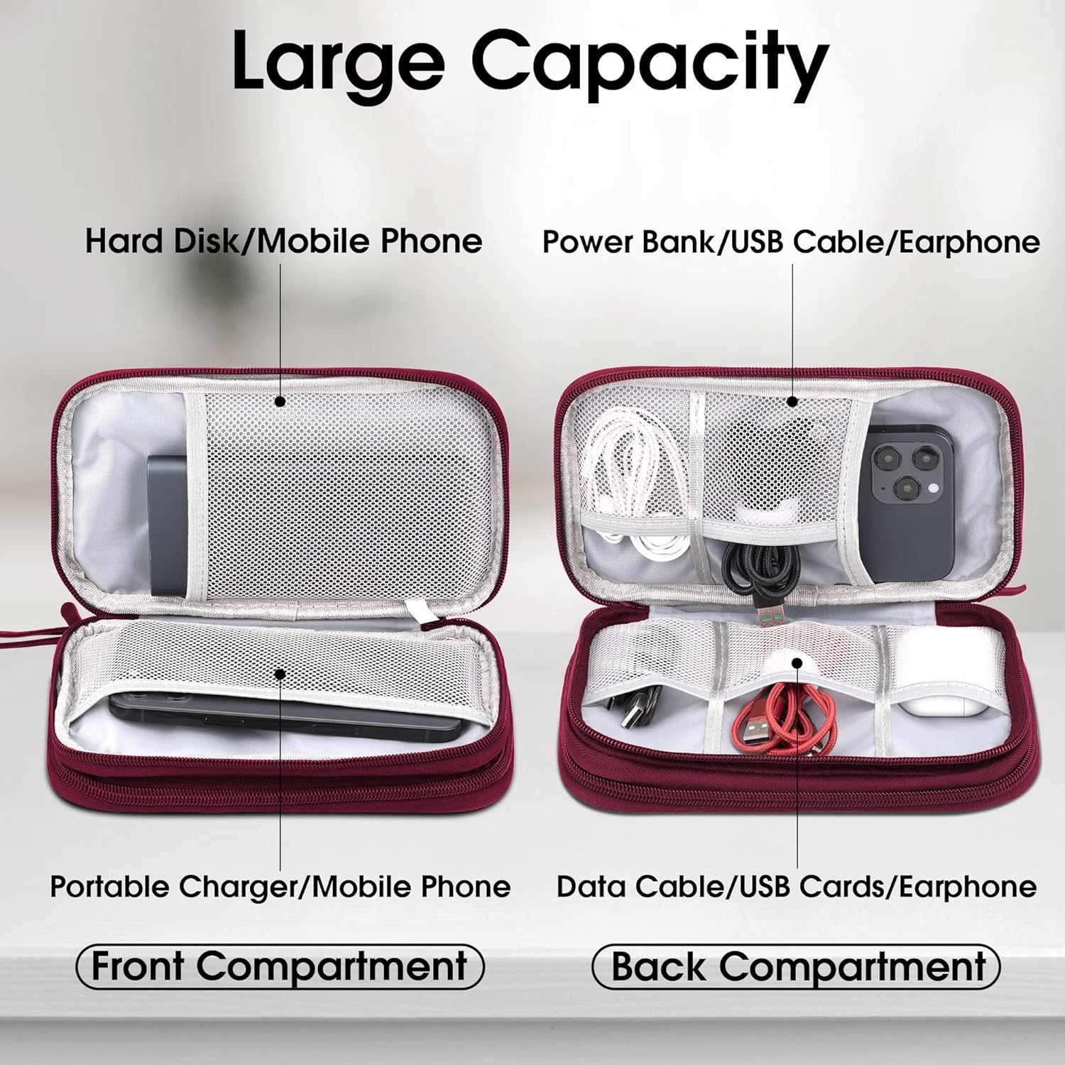 [Double layer design] – The electronic organiser bag has 2 layers of inner compartments with enough space for your cables, USB drive, mobile phone, charger, mouse, flash drive, and other accessories.