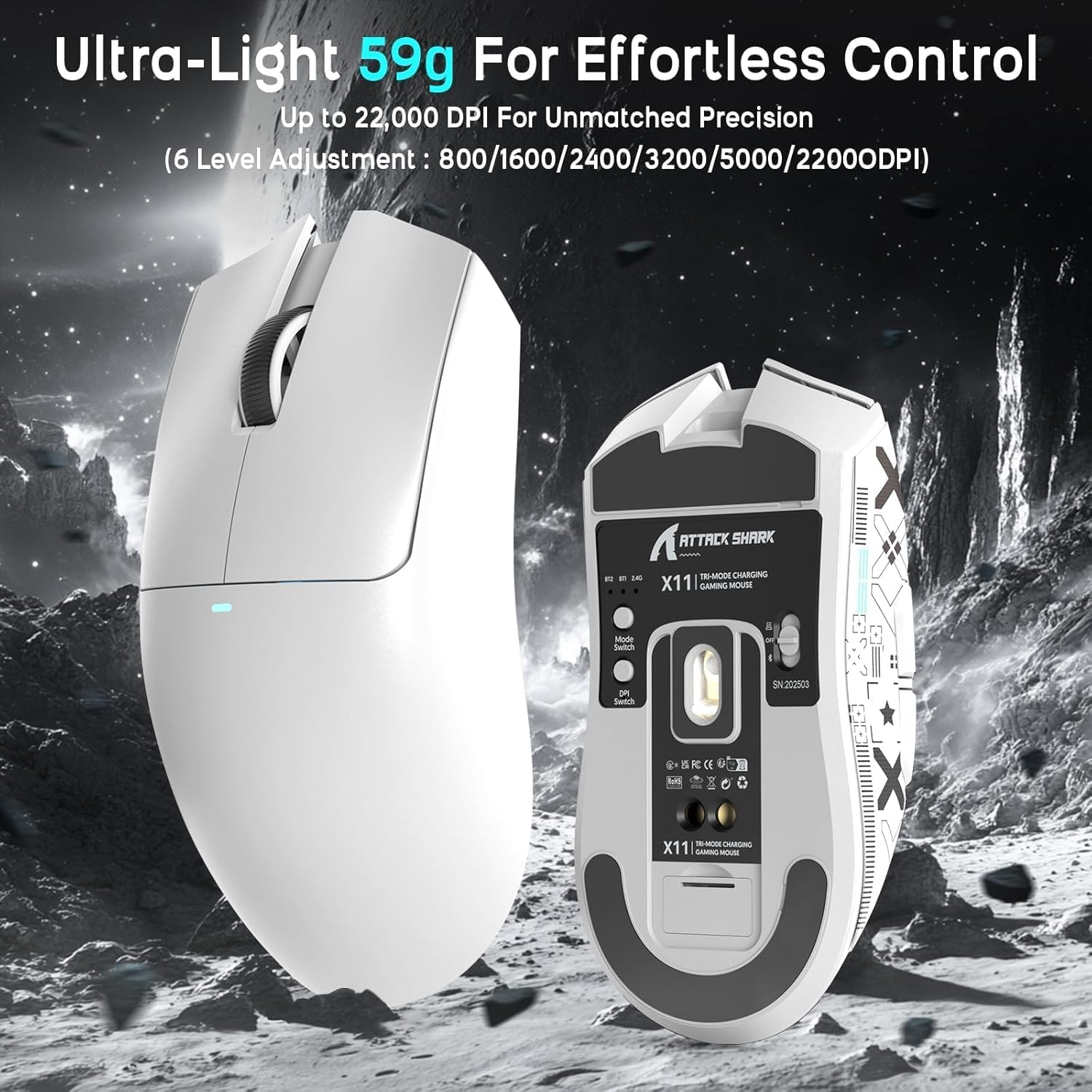 【PAW3311 Sensor & 22,000 DPI】The X11 wireless mouse features the high-performance PixArt PAW3311 sensor, delivering 22,000 DPI, a 1000Hz polling rate, and 35g acceleration for ultra-responsive gameplay. Enhanced with mouse grip tape, it provides superior control, ensuring stability during high-speed manoeuvres and precision for intricate tasks—offering both comfort and competitive accuracy.