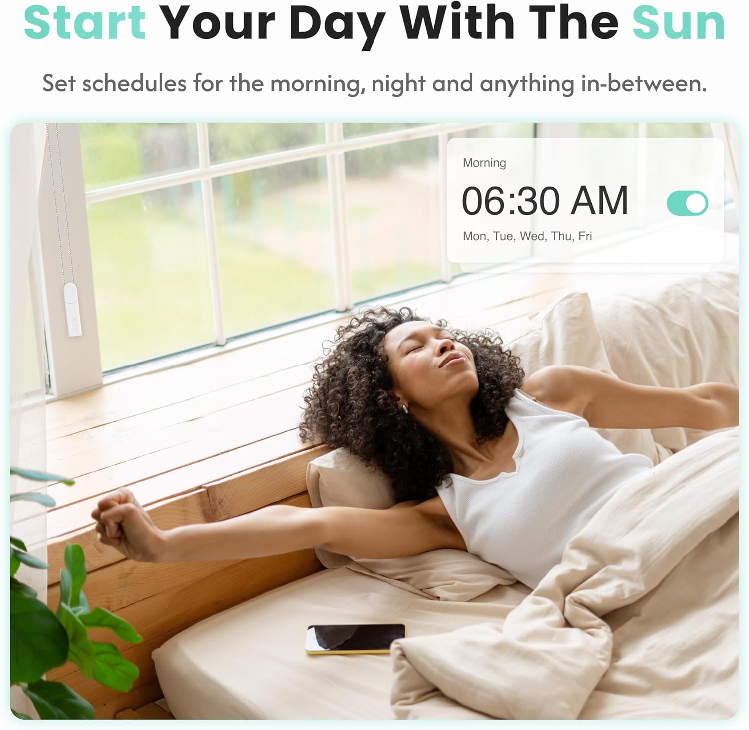 CUSTOM SCHEDULE: Create schedules based on your routine, allowing your shades to open or close at specific times & positions [ONLY AVAILABLE WITH THE TUYA HUB – NOT INCLUDED]