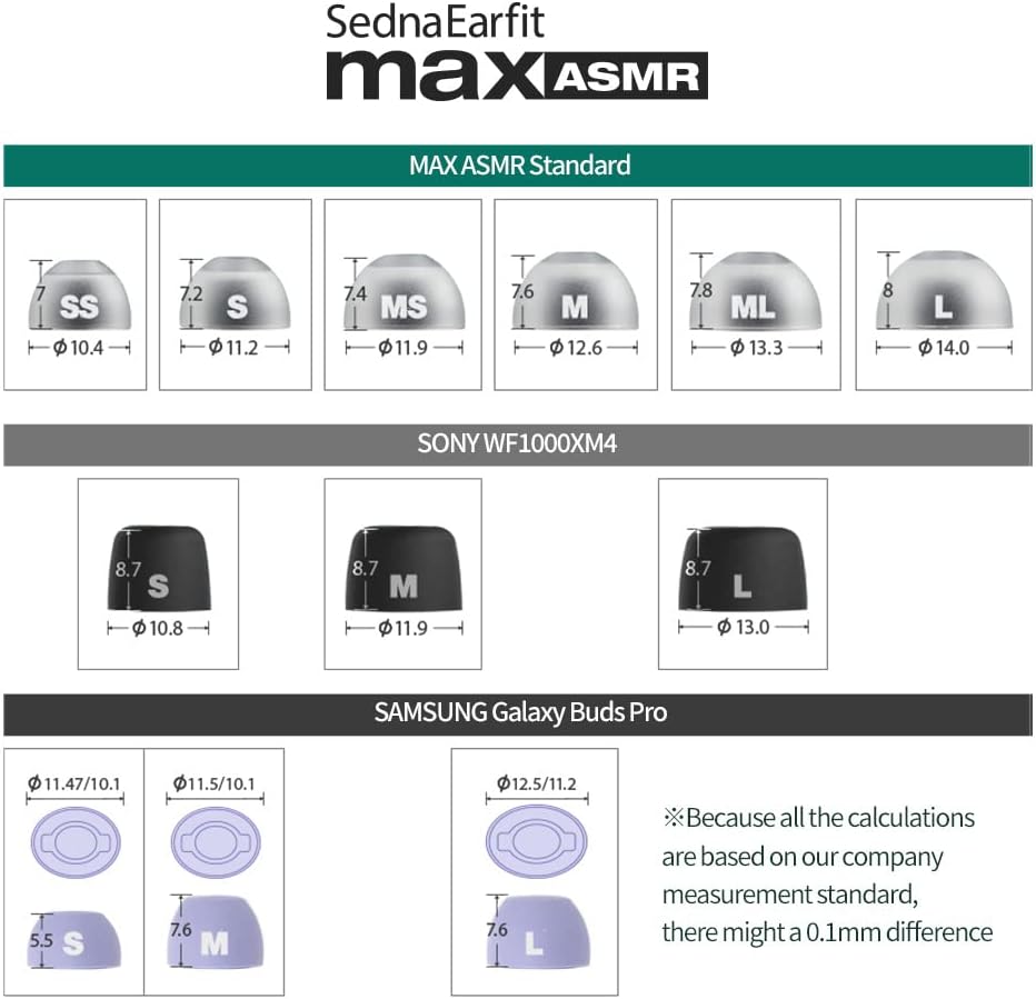 Wide Compatibility: Our earbud tips are also compatible with ANKER Liberty 3 Pro, A40, Life Dot 2 ANC, Audio-Technica CKR7TW, SPORT7TW, ATH-SQ1TW, ATH-TWX9, AKG N400, Britz BR-TWS202, Bang & Olufsen E8 SPORT, EQ, E8, Bowers & Wilkins Pi7, Pi7 S2, Pi5, BGVP Q2S, Denon Perl Pro, Harman Kardon Fly TWS, Jaybird Run, JBL WAVE100, Streak, JLab Epic Air ANC, Master & Dynamic MW08, MW07, Noble Audio Falcon, Fokus Pro, Noble Fokus Prestige, Nuheara IQBuds2 MAX, Philips TAT4556, Sennheiser Momentum True Wireless 4, MTW3, MTW 1, MTW 2, CX True Wireless, CX400BT, CX PLUS TW