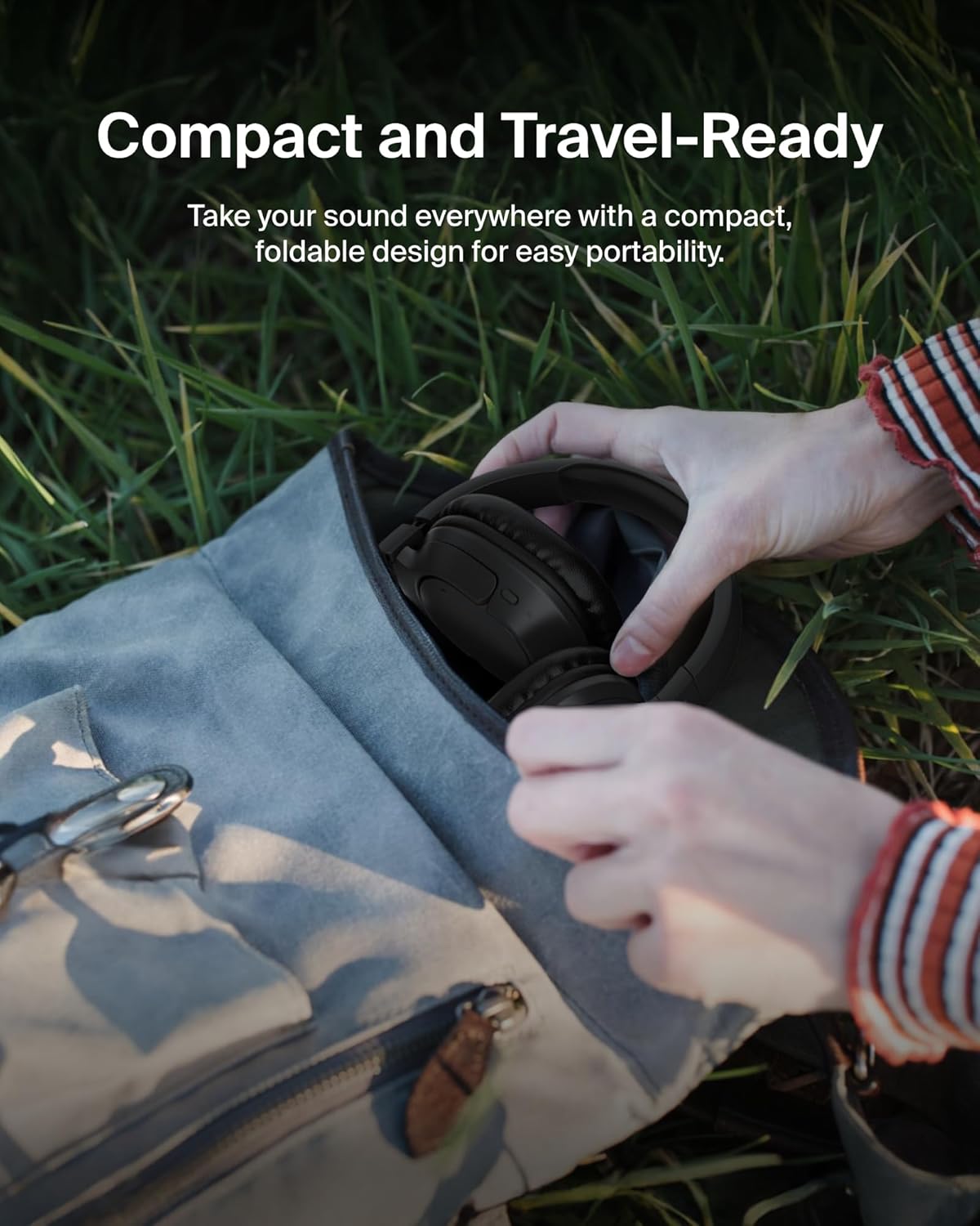 EAR CUP COMFORT AND FOLDABLE DESIGN: the pillowy soft ear cups provide all-day comfort and immersive sound absorption, while a foldable design allows you to conveniently carry them wherever you go; adjustable headband also caters to any head size