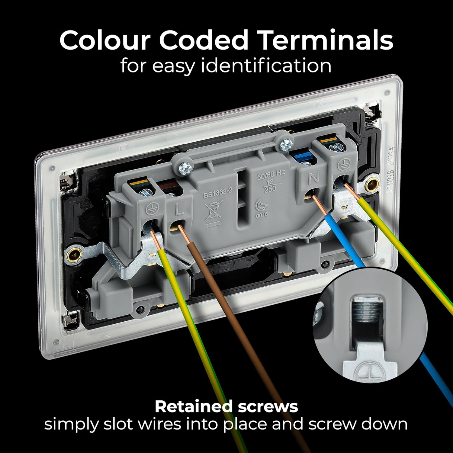 CONVENIENTLY ANGLED IN-LINE COLOUR CODED TERMINALS WITH CAPTIVE SCREWS: Makes it incredibly easy to install and to connect the wires, simply slot the wired in and screw down