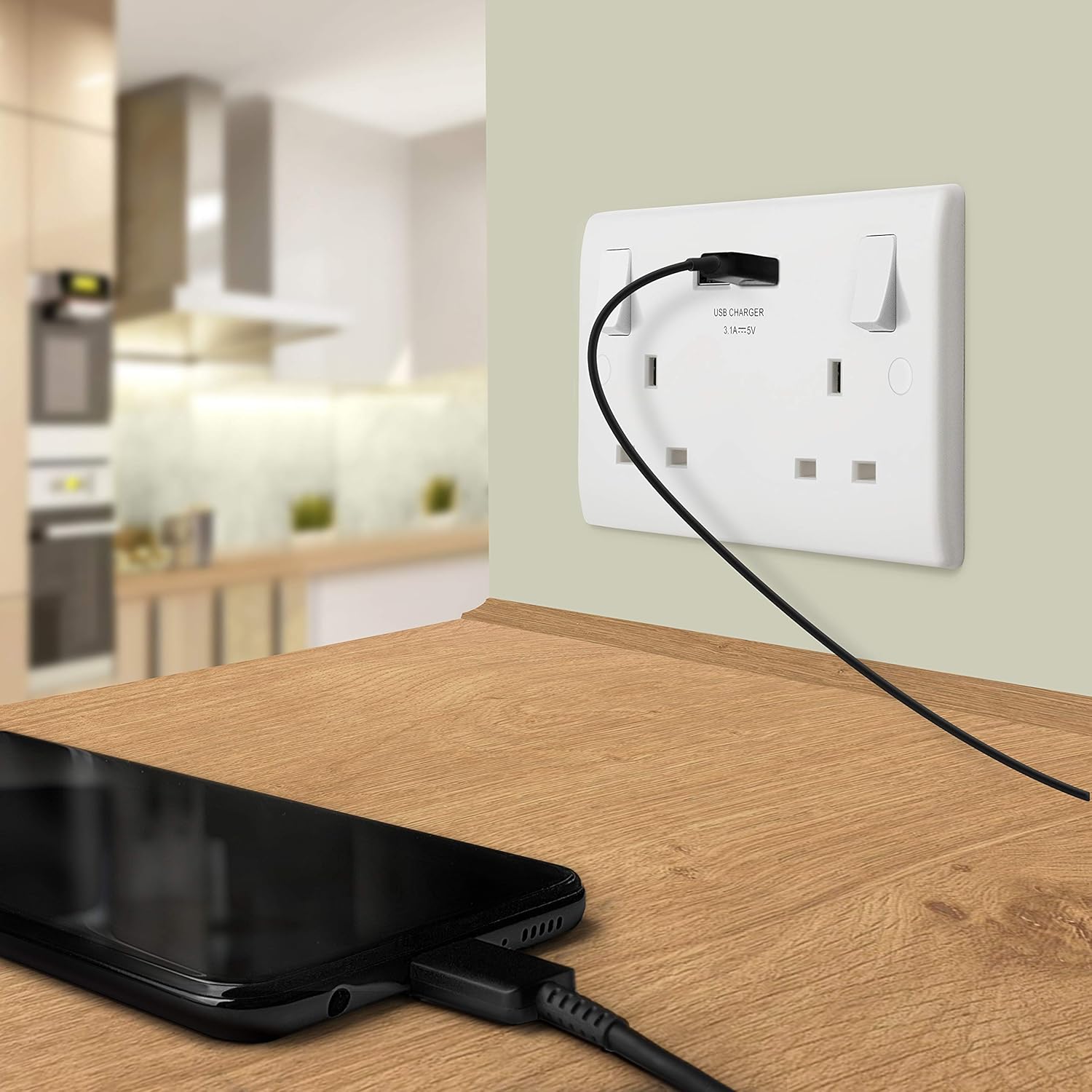 SLEEK AND SLIM DOUBLE SWITCHED POWER SOCKET: From BG Electrical, has softly rounded corners and a slim profile – combining quality with modern elegance
