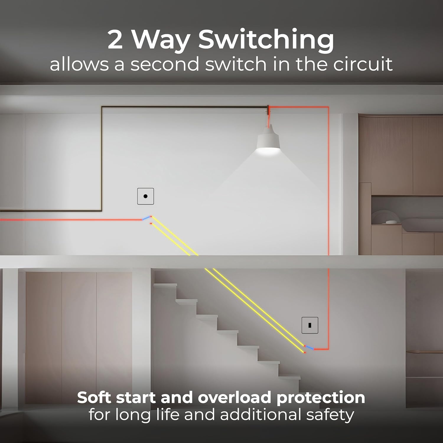 INTELLIGENT TRAILING-EDGE DIMMER: Trailing (lagging) edge for dimming LED, dimmable CFLs and traditional lights – smooth operation of your lighting with no buzzing. Soft-start brings the lights to a set level quickly, extending the lifespan of bulbs