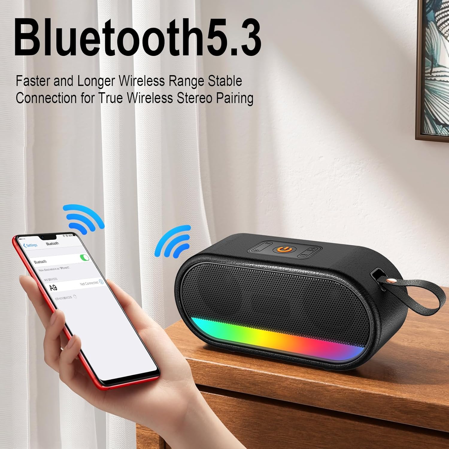 Bluetooth Speaker, Bluetooth 5.3 Portable Music Box, Bass Drivers, LED Breath Light, Hands-Free Function for Phone, Dustproof and IPX6 Waterproof, 10h Battery, Suitable for Outdoor/Party/Travel