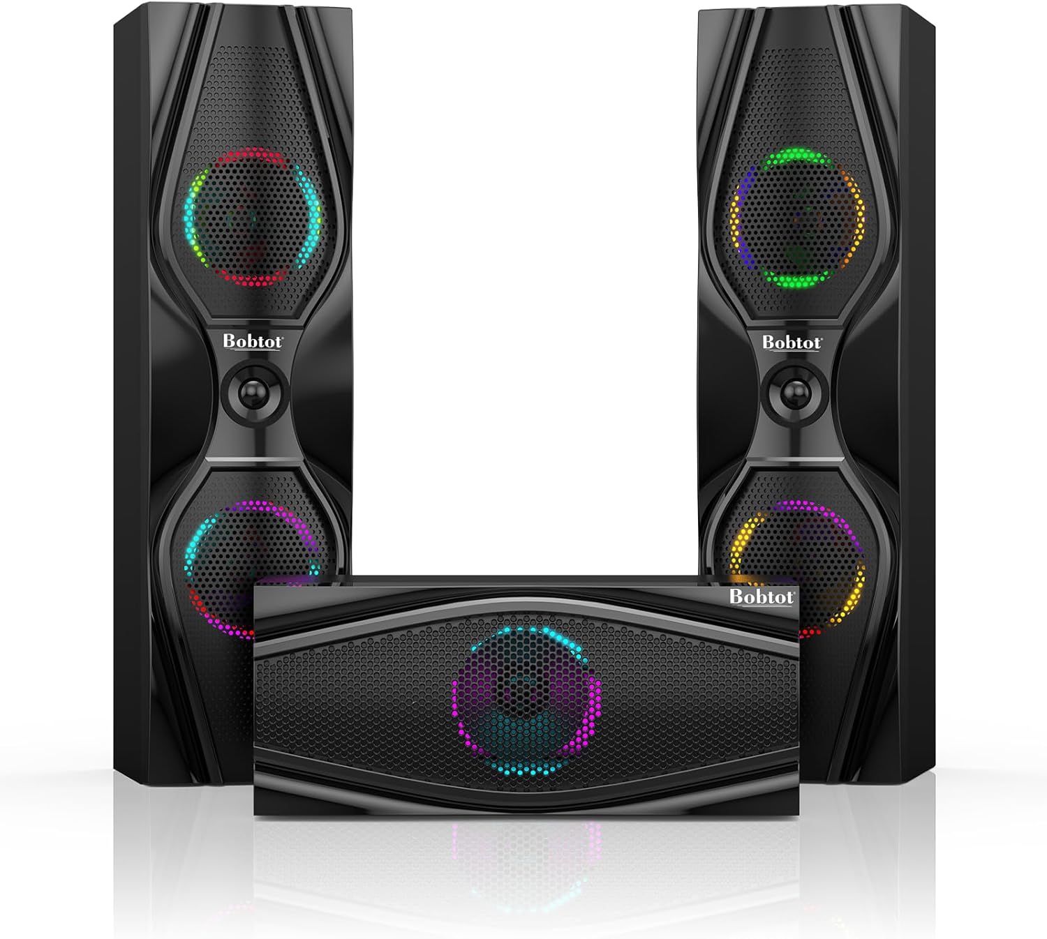 1200 Watts Peak Power: Bobtot Home theater system speakers can reach up to 1200 watts of power, 10-inch Subwoofer with a built-in receiver, high volume but with professional sound quality and excellent bass sound, deliver the cleanest, most natural sound possible.