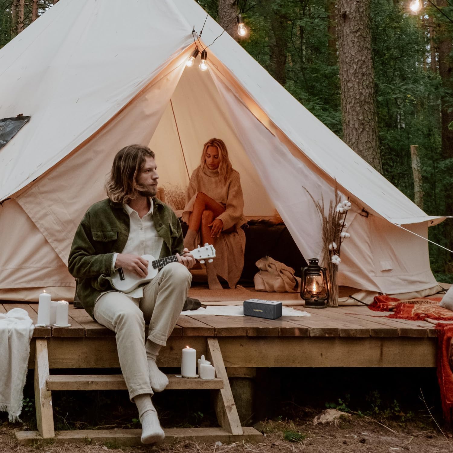 【Top Bluetooth 5.3 Version】The outdoor speaker adopts advanced Bluetooth 5.3 technology, which provides a faster and more stable bluetooth connection within a normal range of 60 feet. The wide compatibility allows you to connect your smartphone, computer, TV and PC in seconds. It also supports TF card, USB flash drive and AUX input.