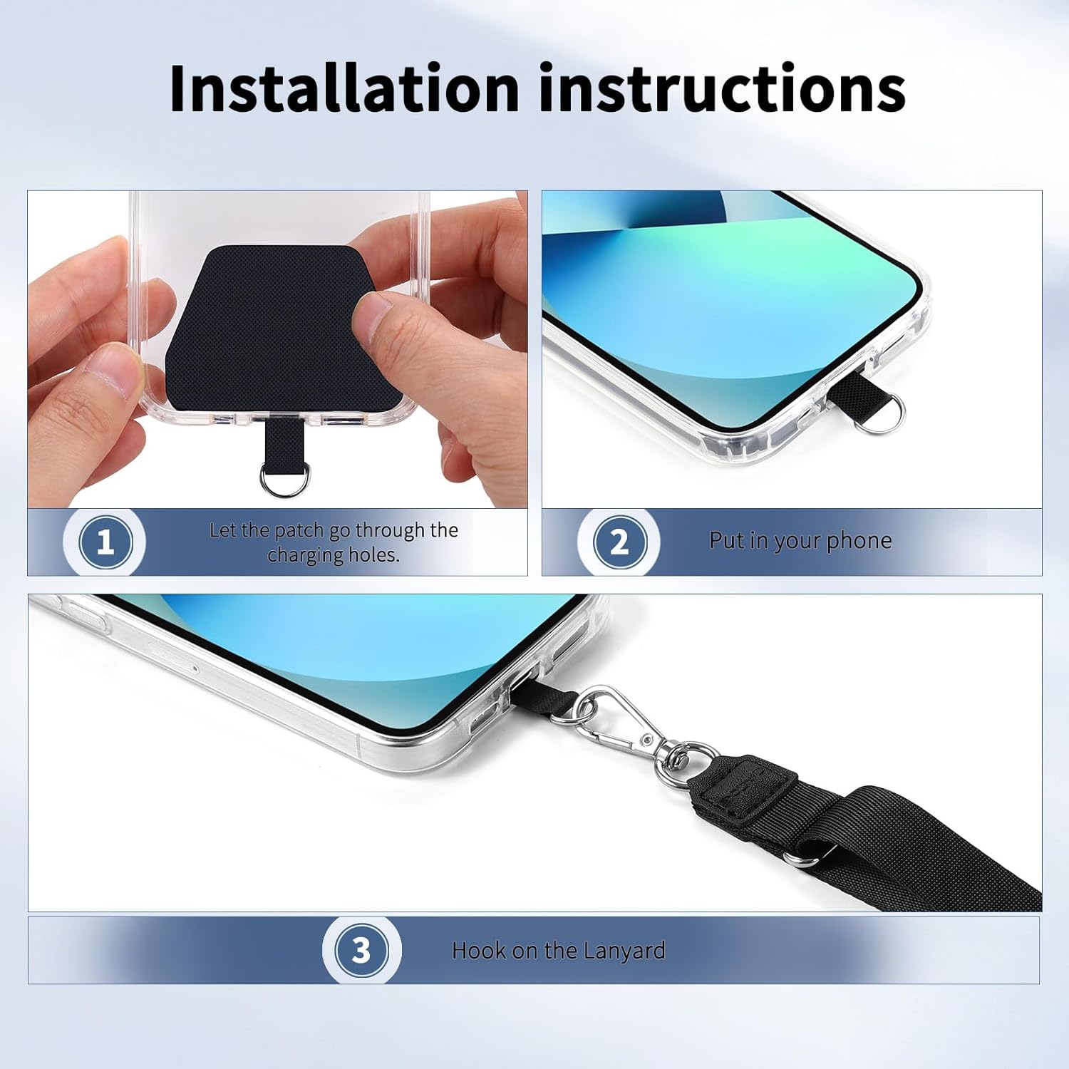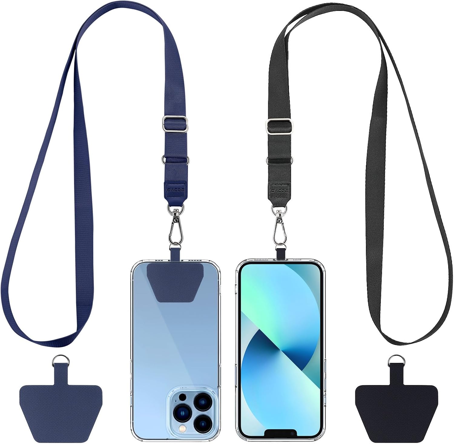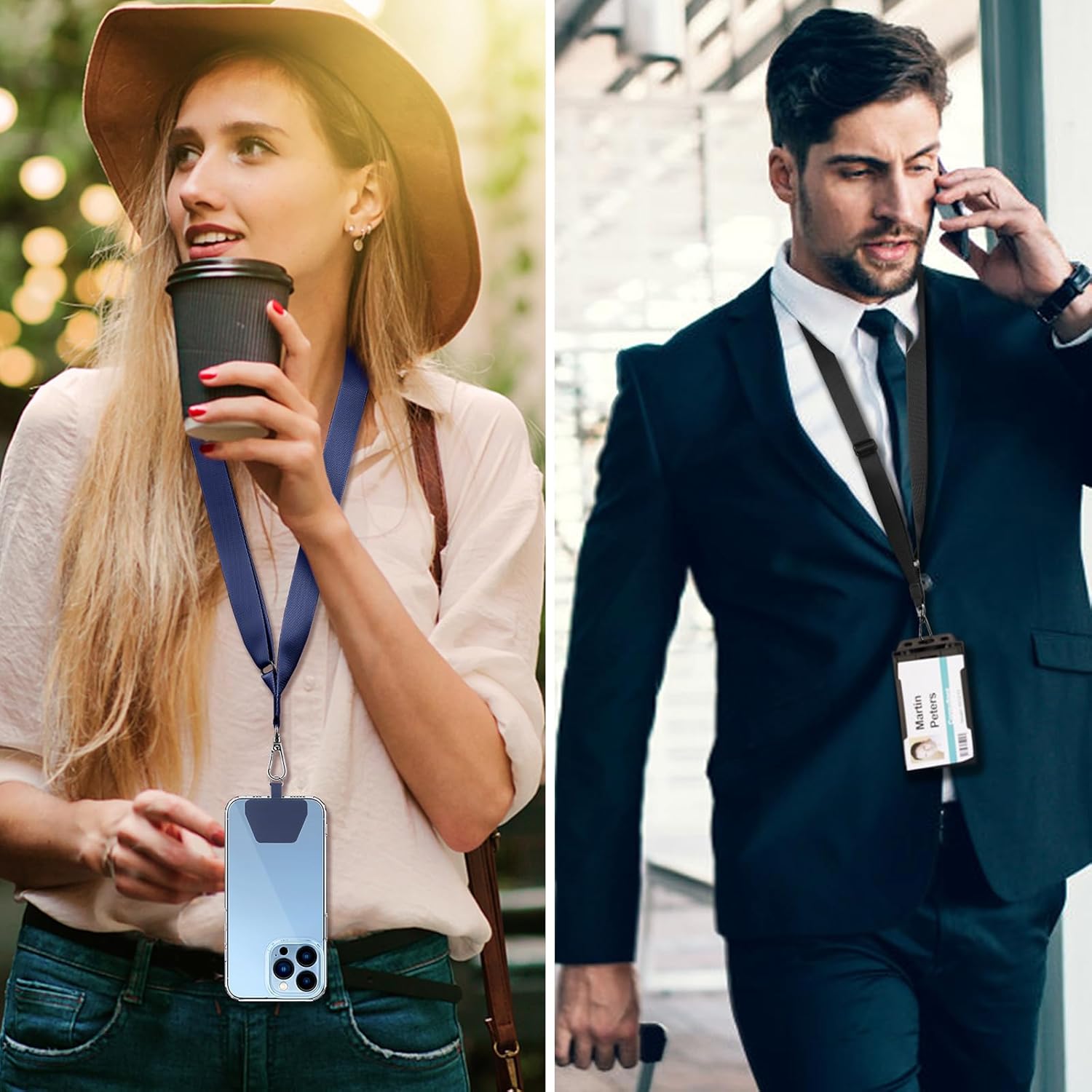Universal Mobile Phone Chain, 2 Packs Adjustable Collar Lanyard and 2 Packs Durable Patches, Lanyard Mobile Phone Neck Strap Compatible with Most Smartphones