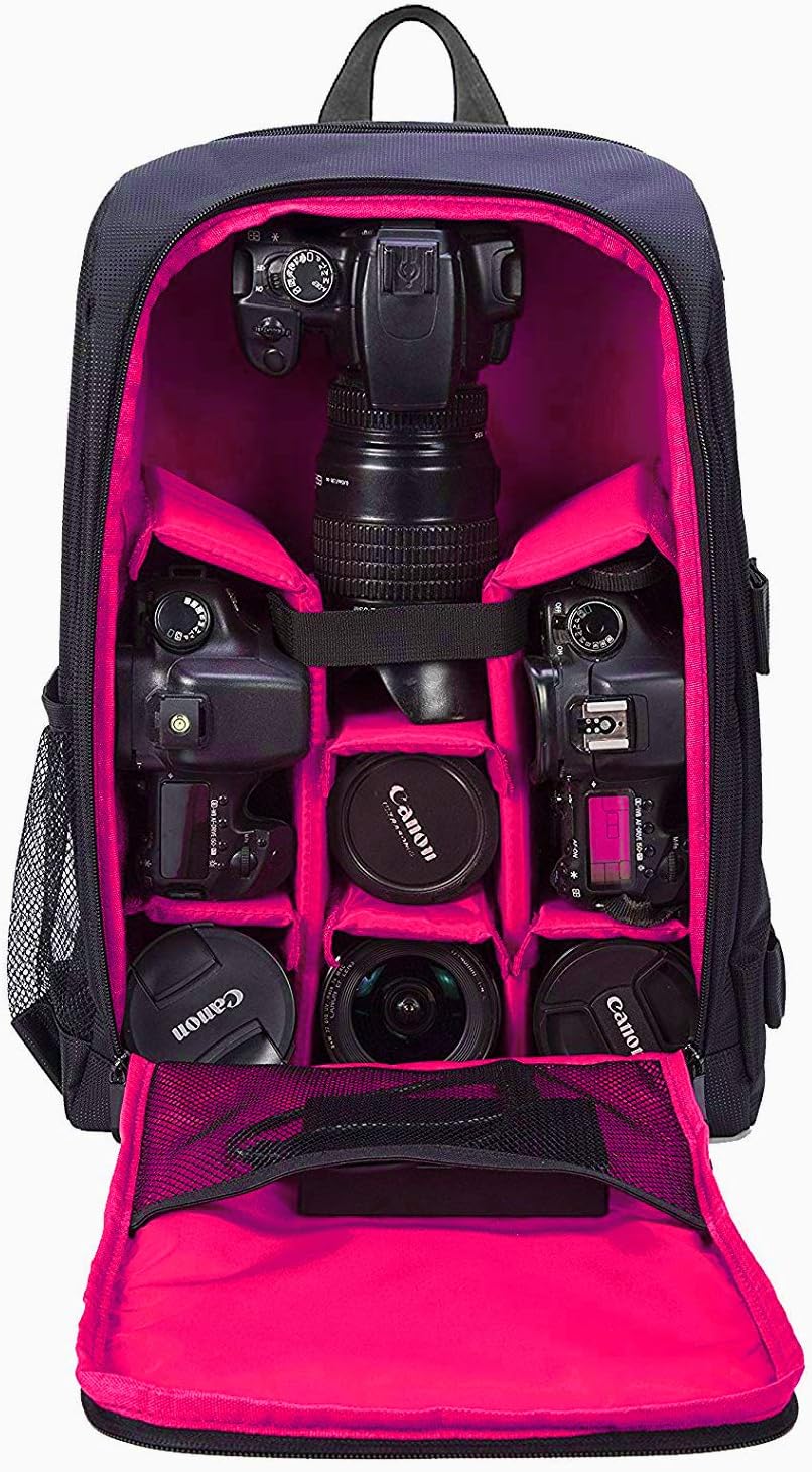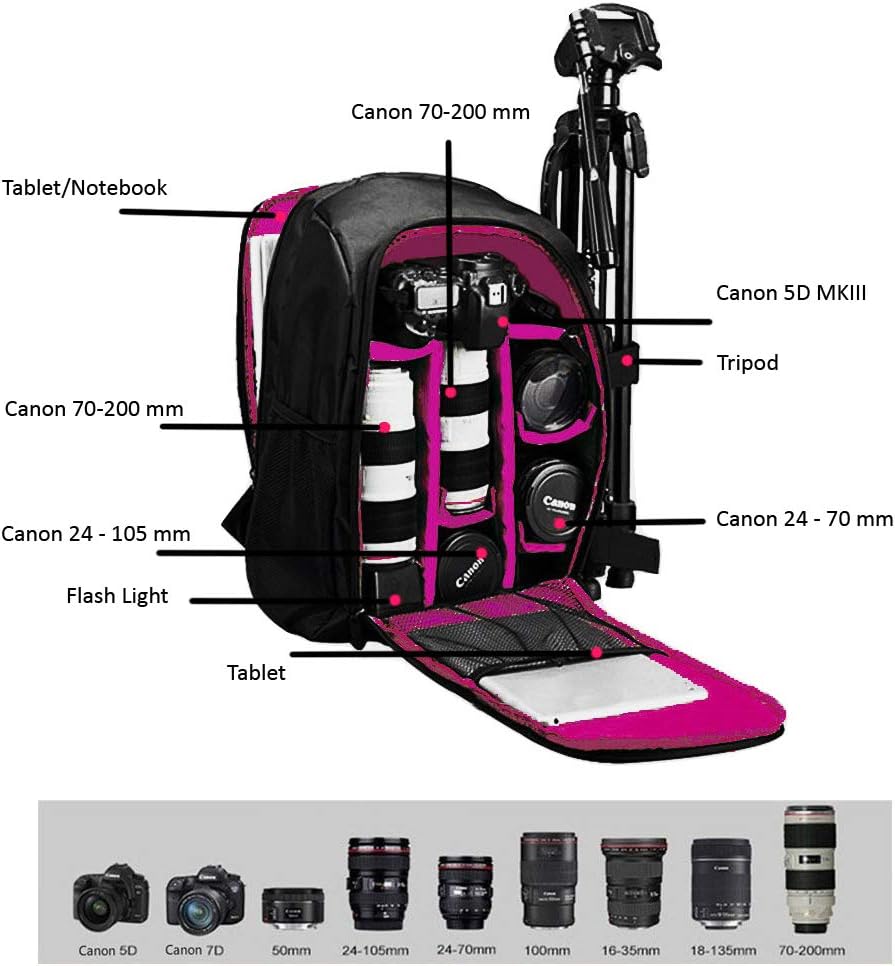 Customize It: No matter what equipment you use, the removable interior of the backpack can be adjusted to fit multiple DSLR bodies, lenses, and accessories. The bag also features adjustable straps on the exterior to attach and carry a tripod.