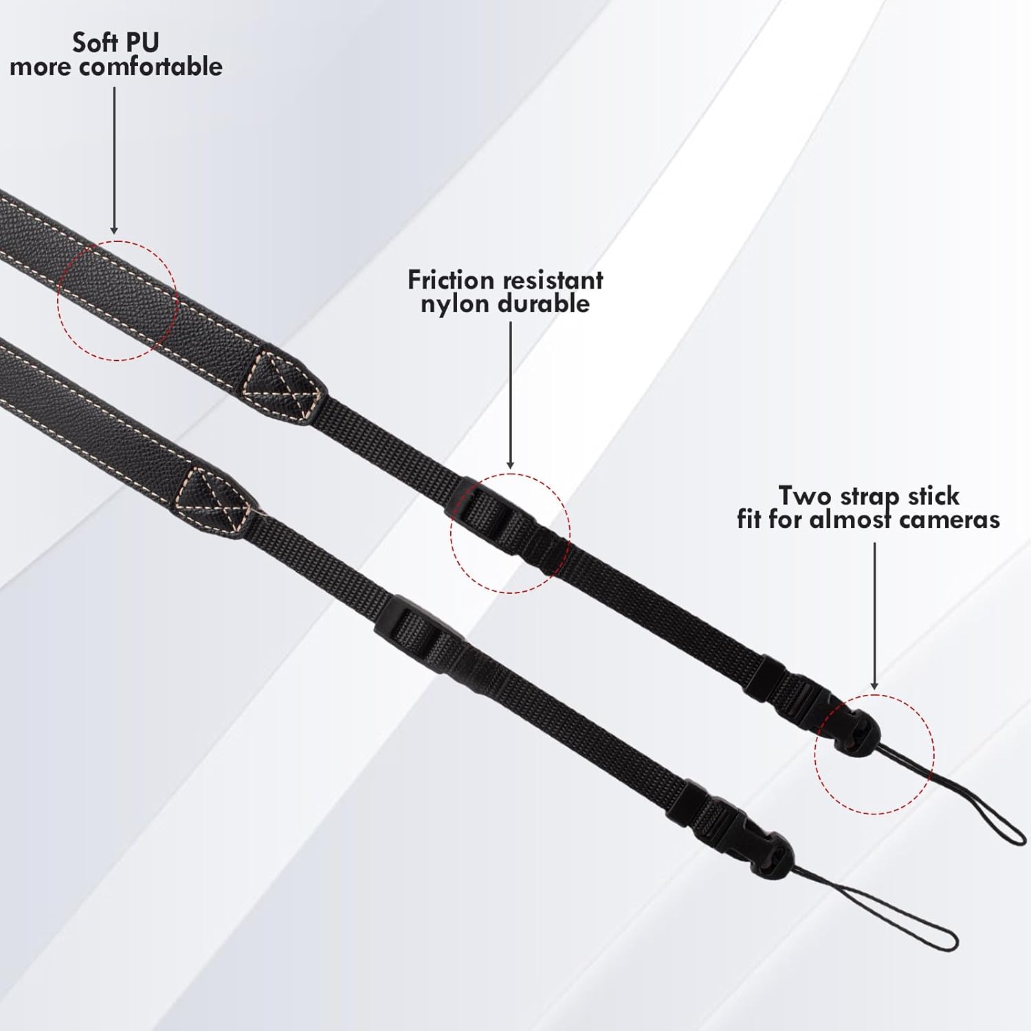 Superior Protection:Crafted from high-quality and durable PU leather and nylon for added strength and a casual look.This camera neck strap provides extra durability and comfort during extended use.