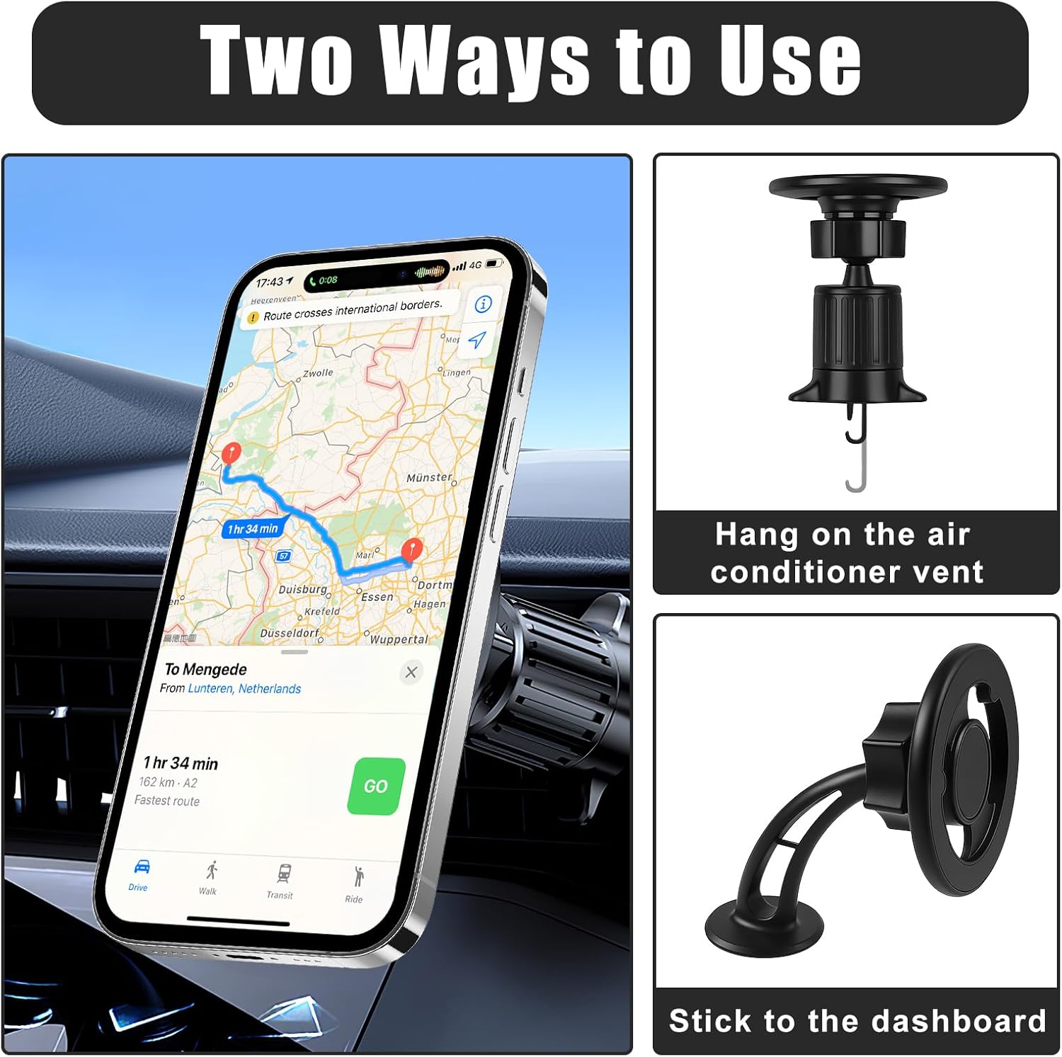 [Powerful Magnets for Secure Hold] This car mount is equipped with magnets, offering an extremely secure hold for your phone. These powerful magnets ensure your Phone stays safely in place, even during bumpy rides, keeping you focused on the road. Please note, this car mount does not have a charging function but guarantees a stable, no-slip phone mount for driving.