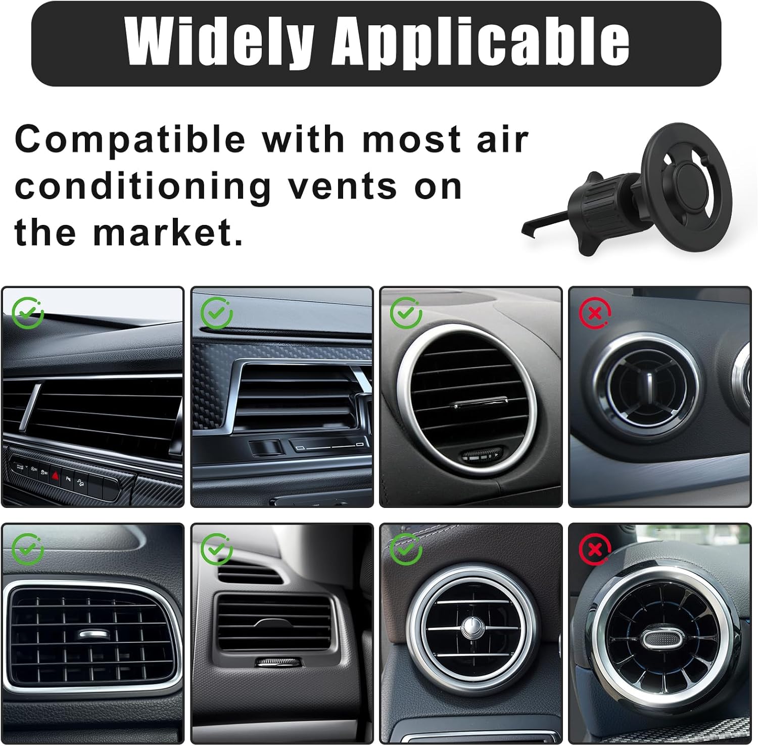 [Stable Air Vent Compatibility] Designed for air vent compatibility, this magnetic car phone holder fits most standard air vents and ensures a stable triangular structure once installed. This stability prevents any shaking or falling during drives, providing a secure mount for your phone. However, it’s not compatible with round air outlets or shutter-style air vents.