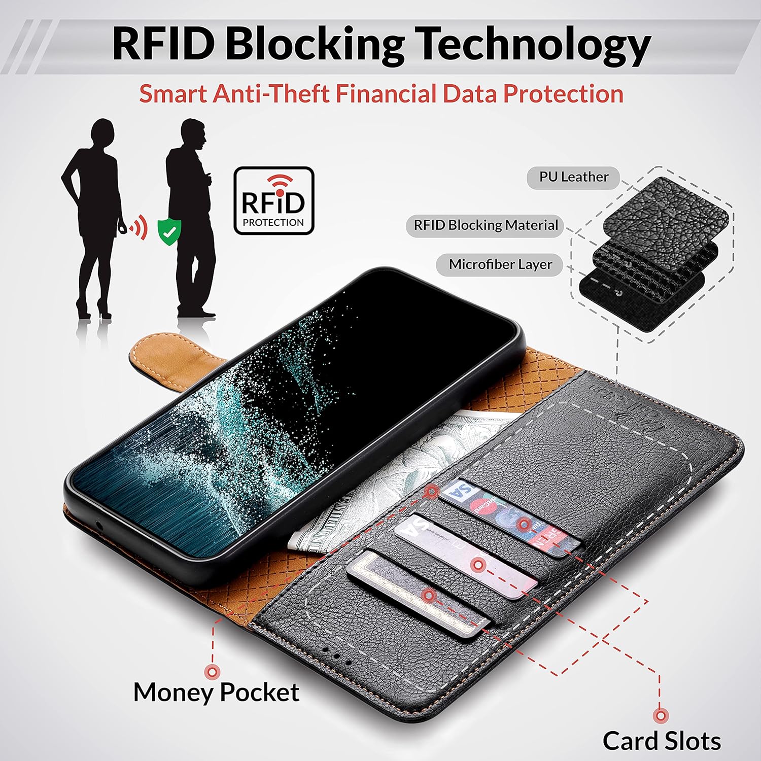 Exquisite Craftmanship – Offering luxury style and premier durability this flip wallet phone case is made with a soft TPU holder, reinforced stitching, and exceptional quality PU leather to provide a professional look for men and women alike.