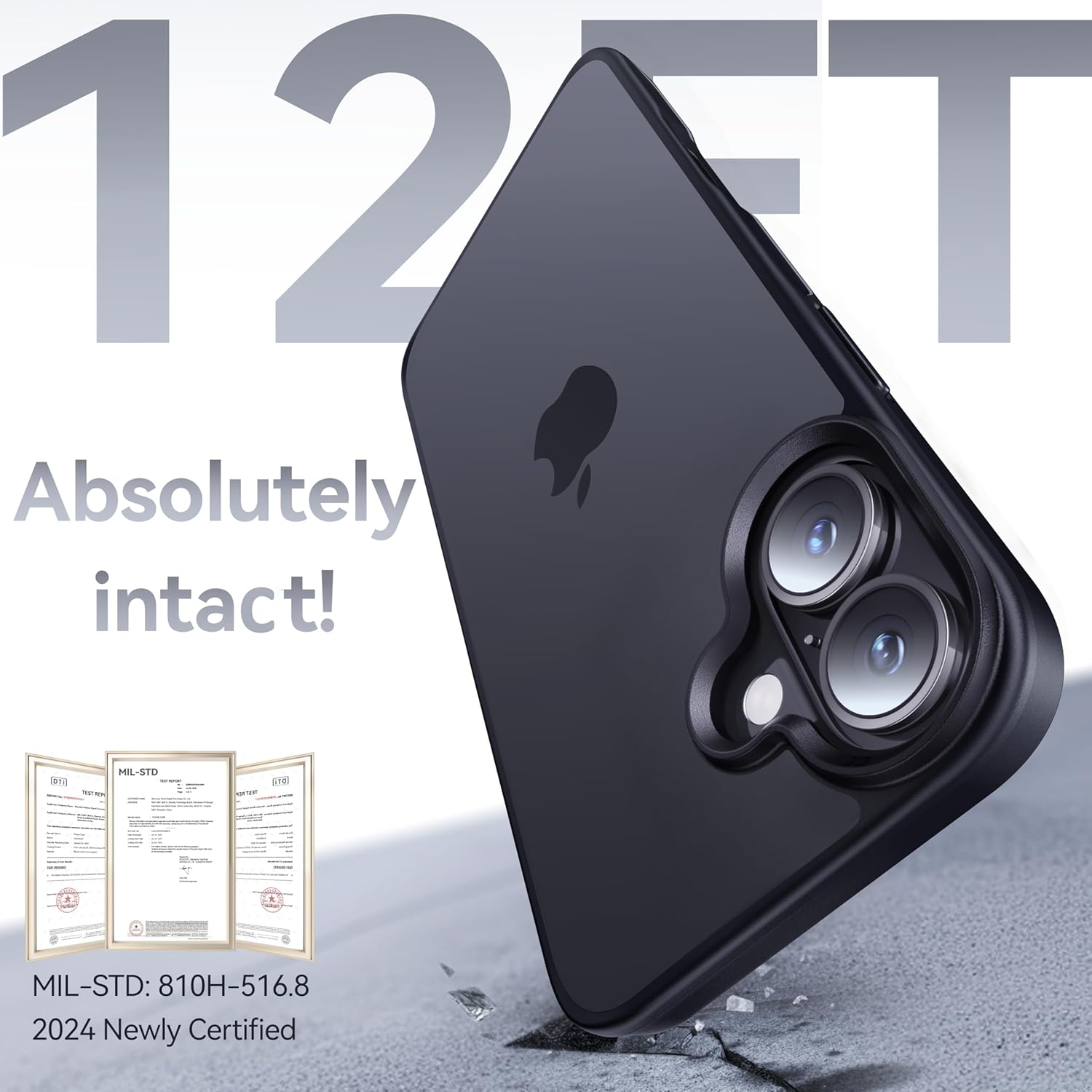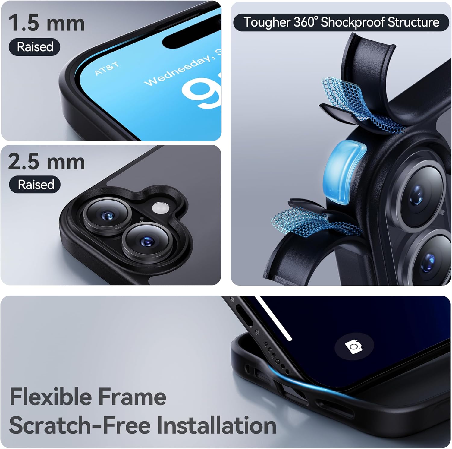 [Industry Leading Military Grade Protection] This for iPhone 16 case is upgraded with a larger shockproof air cushion, 3-layer reinforced bumper, and a tougher back panel. Passed 5500 military-grade MIL-STD-810H drop test at 3.66m height and 26 angles! Camera edges are raised 2.5 mm and display edges are raised 1.5 mm, providing all-round protection for your new phone!
