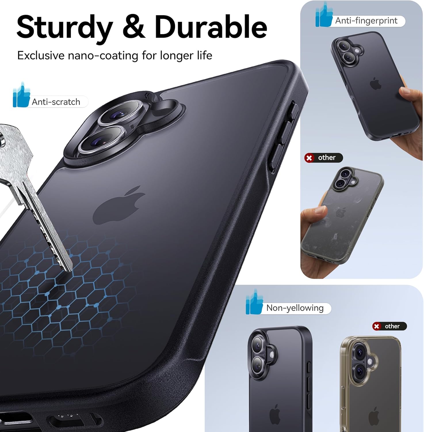 [Sturdy & Durable] This compatible for iPhone 16 phone case is made of high quality PC material and exclusive nano-coating, which can truly anti-fingerprint, oil and grease, scratches, and anti-yellowing. Its superior quality ensures that the case will always look as good as new in long-term use.