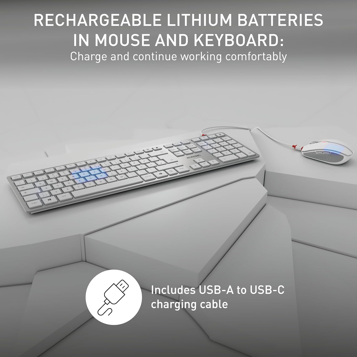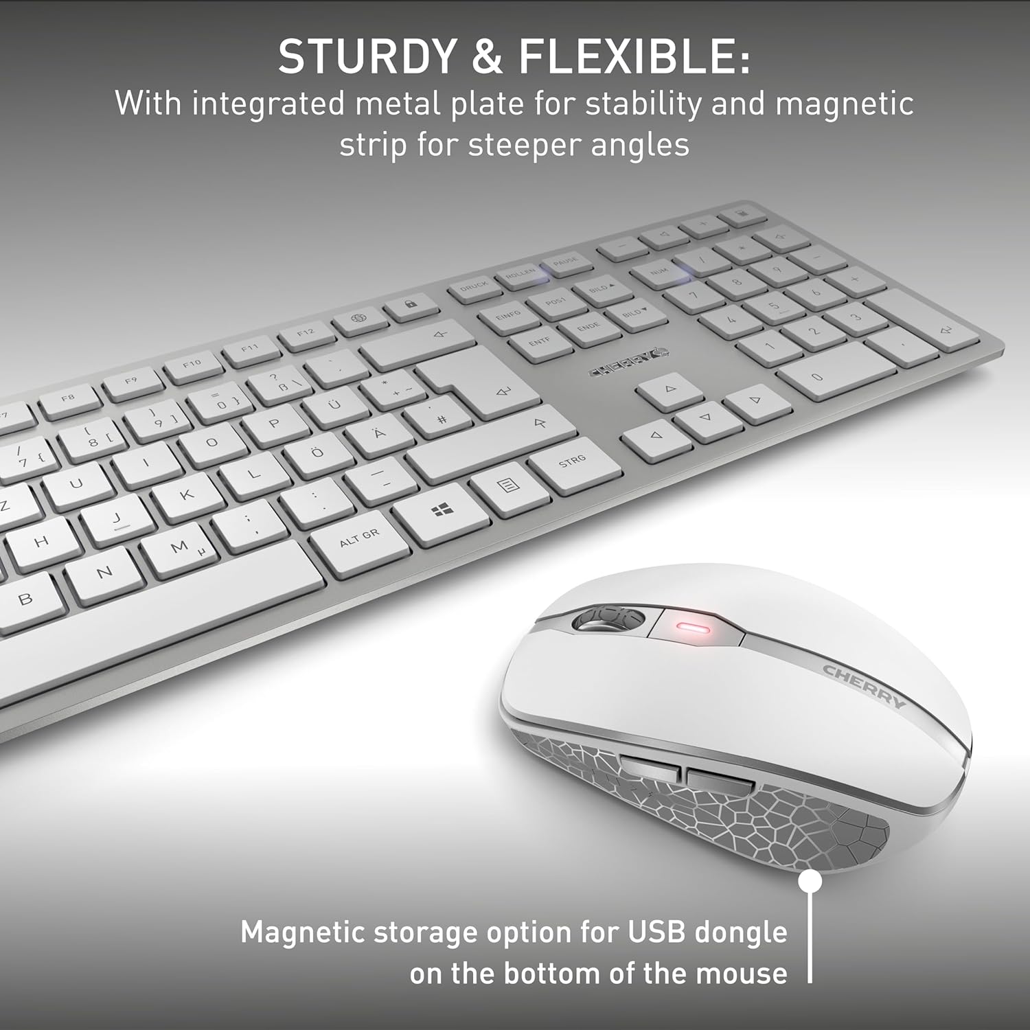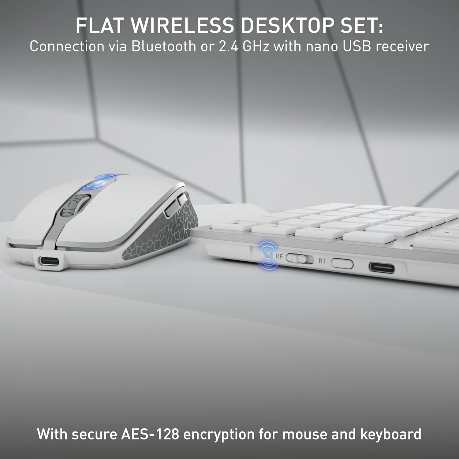 Wireless desktop set: Choice of connection via 2.4 GHz RF with extra-small nano receiver or via Bluetooth – secure AES-128 encryption for mouse and keyboard