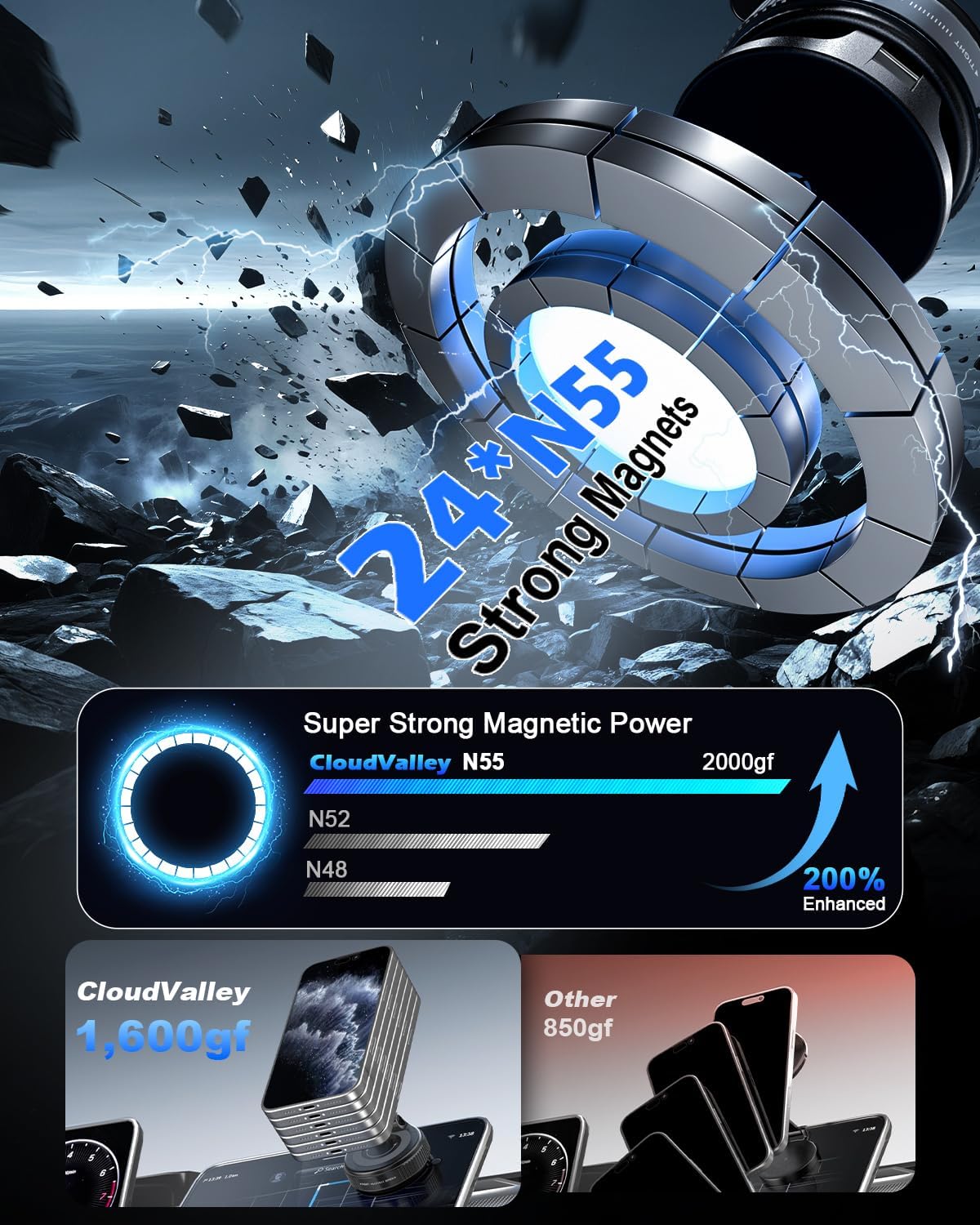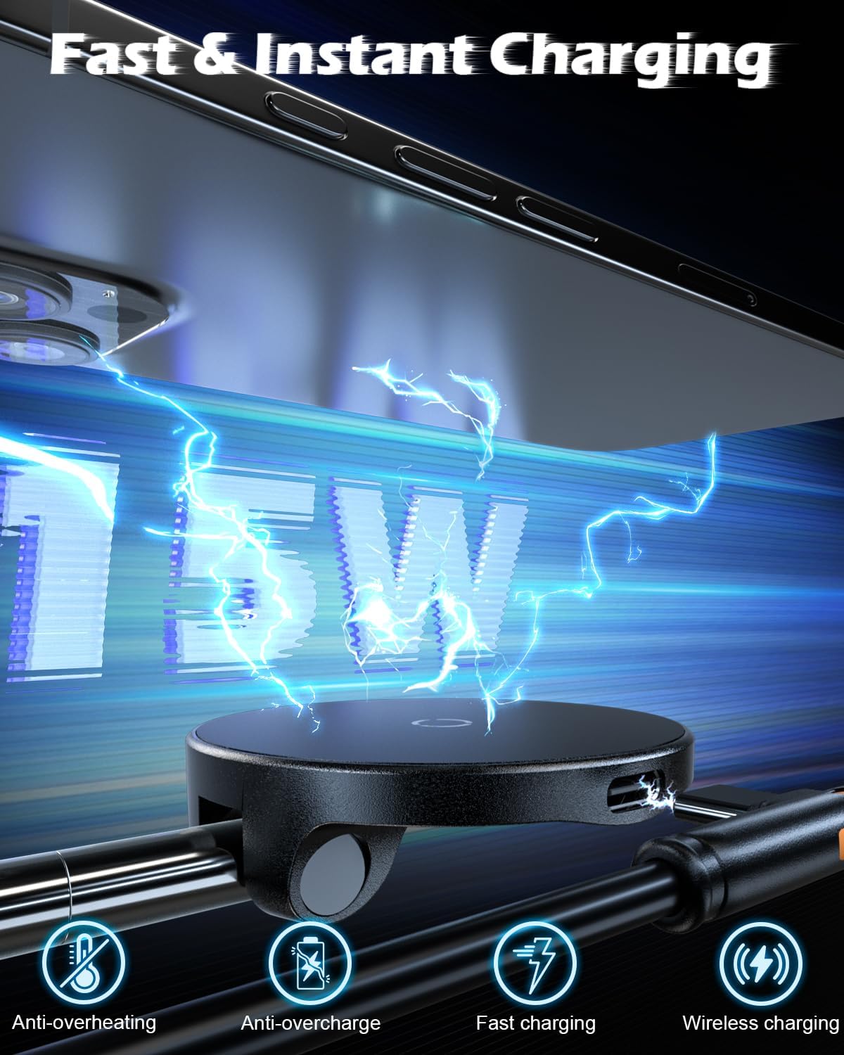 【15W Magnetic Fast Charging , Ready to Charge】Support 15W high efficiency charging, immediate release and charging, intelligent alignment of magnetic suction points. Built-in smart chip automatically matches the optimal power to prevent overheating and overcharging and protect the battery life. Compatible with iPhone 16/15/14/13/12 series and other devices that support magnetic charging, make navigation, calls, videos smooth and worry-free, full power at any time to go.
