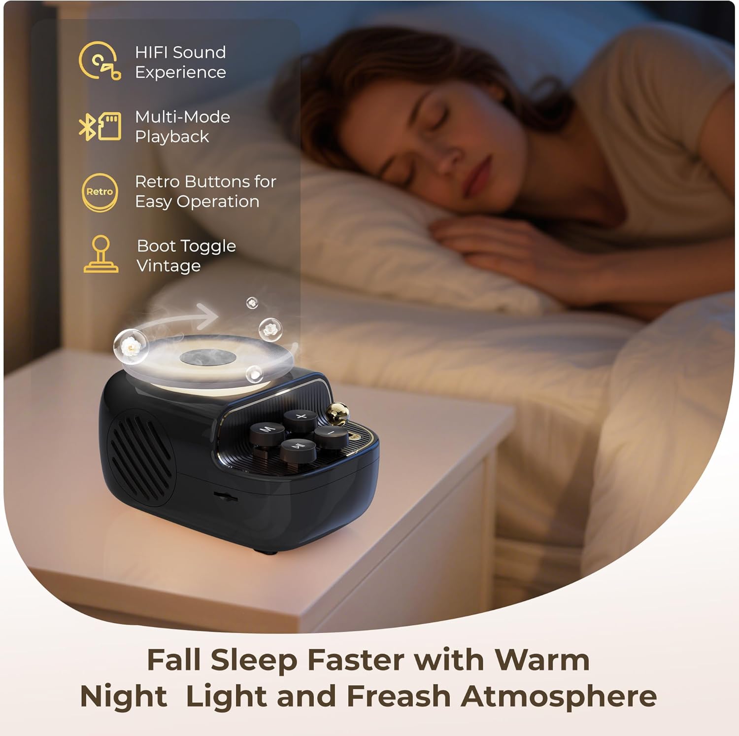 【Aromatherapy Sleep Aid】You can drop your desired aroma on the spinning wheel to be able to give you a sleep aid as you fall asleep. The light of the night light is so soft that it will not feel harsh even at night and can keep you company all night long.(Remarks: Aromatherapy oil liquid is not included in the package)