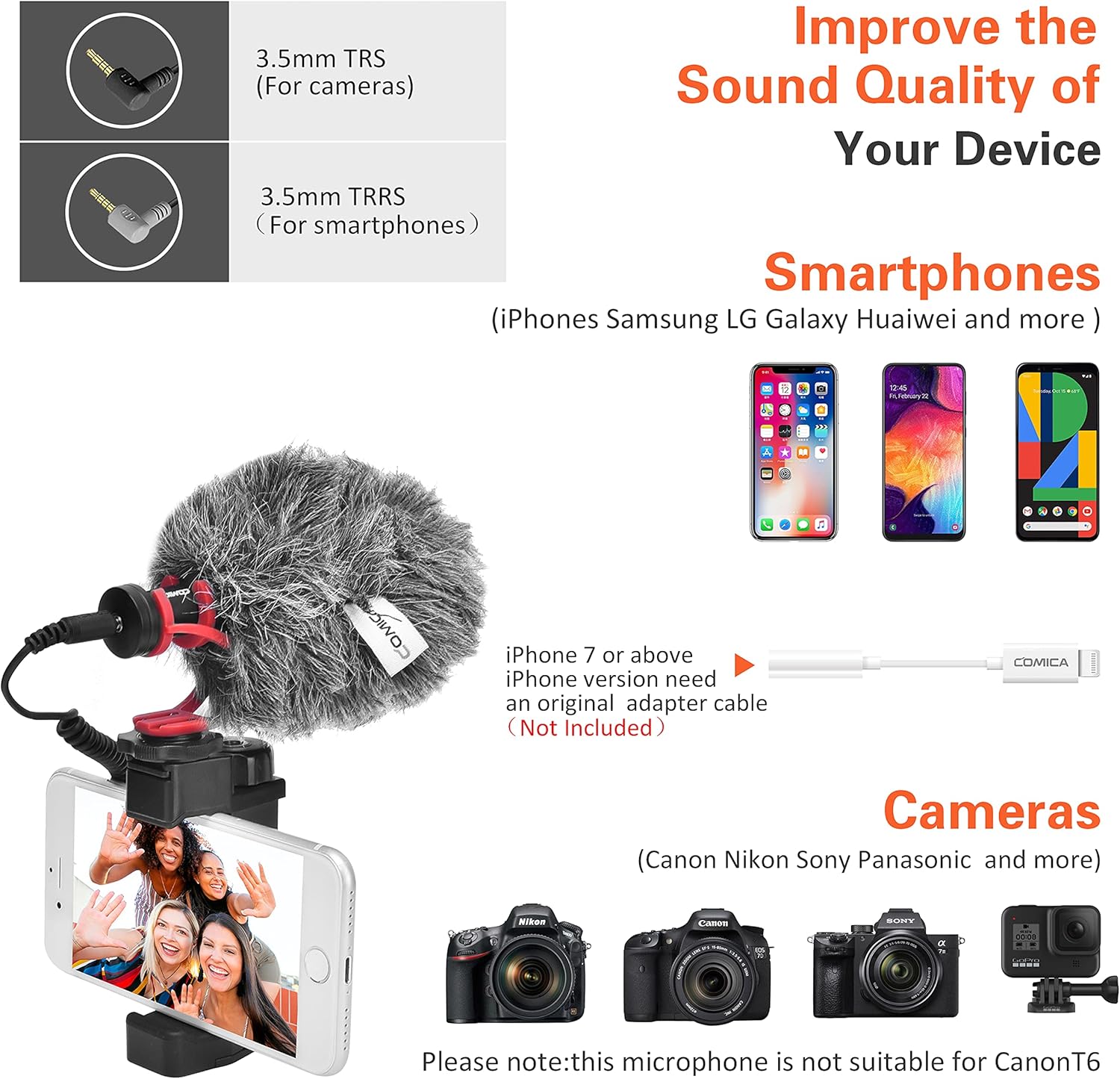 【Wide Compatibility】CVM-VM10II mini video microphone comes with two different audio cables to use for cameras, camcorders, audio recorders, iPhone and Android smartphones, tablets, laptops, etc.