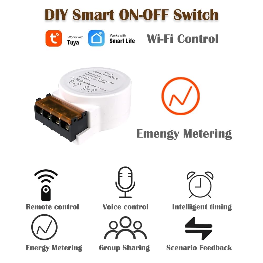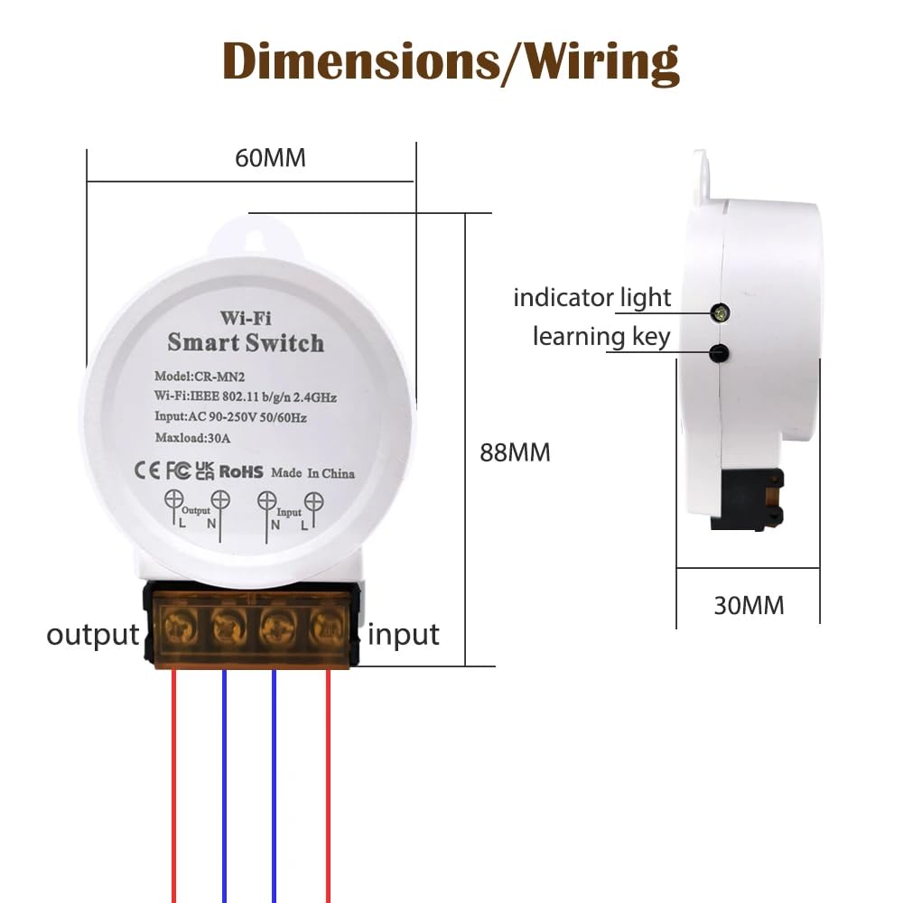 This WiFi relay is designed to make your high-powered devices smart. Whether you have a high-power motor equipment, immersion water heaters, air conditioners, or refrigerators, this smart switch can handle it all.