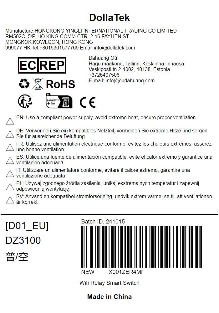 Take control of your household appliances from anywhere with the wifi relay. Whether you’re at home or away, you can easily turn your appliances on or off remotely. There is no limit to the distance or time, giving you the ultimate convenience.