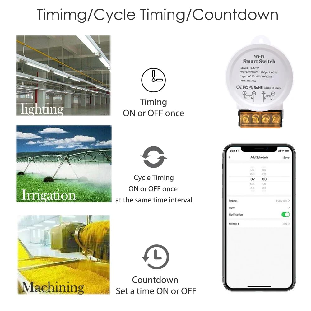 This smart relay with timing function, allowing you to schedule specific turn on and turn off times for your home appliances. You don’t need to worry about accidentally leaving your devices running or forgetting to turn them off.