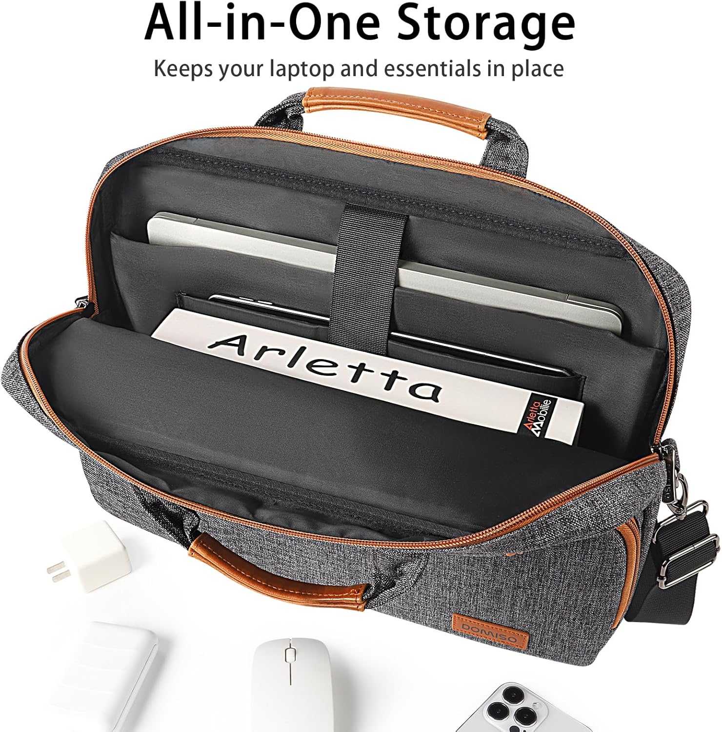 Comfortable to Carry All Day:Tired of bags that snag or feel awkward to carry? The laptop shouder bag makes life easier with smooth dual zippers that open in seconds, a soft yet sturdy PU handle for a premium grip, and adjustable straps that keep you comfortable wherever the day takes you.