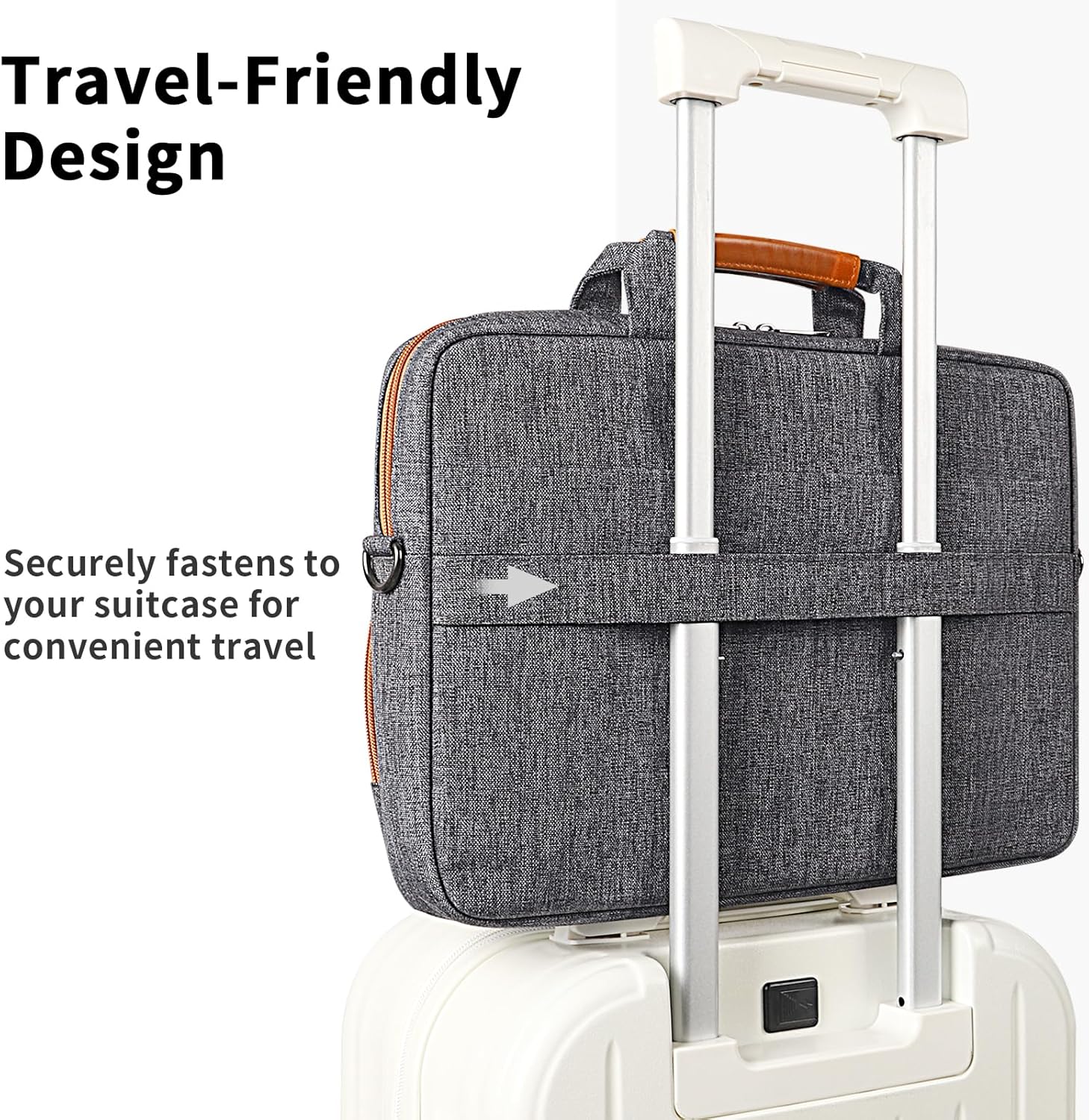 Travel-Ready Luggage Strap:Designed with a built-in luggage strap, this laptop bag easily attaches to your suitcase handle, freeing your hands and reducing shoulder pressure. Perfect for business trips, airport travel, or weekend getaways, it makes every journey lighter and more convenient.