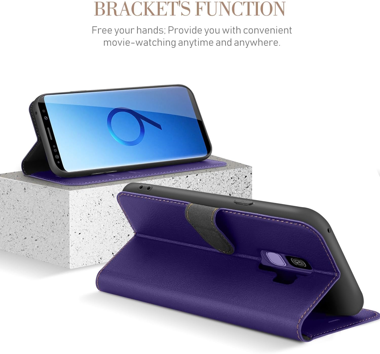 Free Your Hands: This Samsung Galaxy S9 Case can be easily switched to a horizontal position, serving as a stand-up function, and convenient to watch movies or chat video.