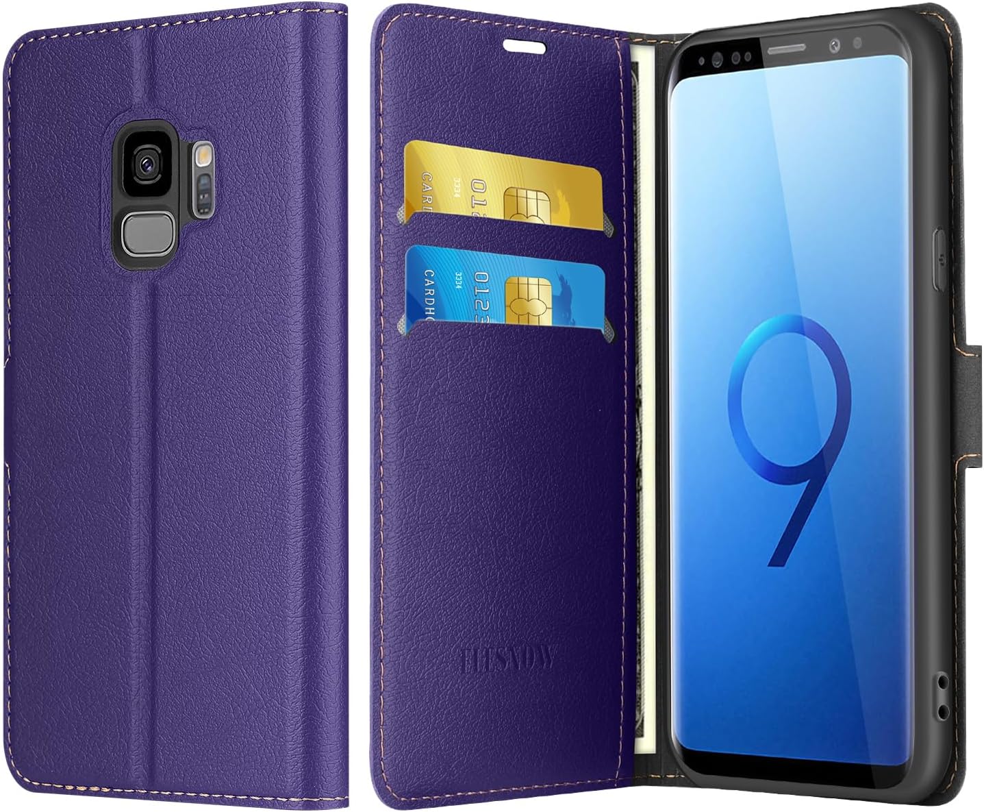 Wallet Case: This Samsung Galaxy S9 Case with 2 card holder and 1 wallet bag, allows you to carry your ID, credit card and cash without taking your wallet. Built-in RFID Blocking material effectively block the signal, protect your personal information.