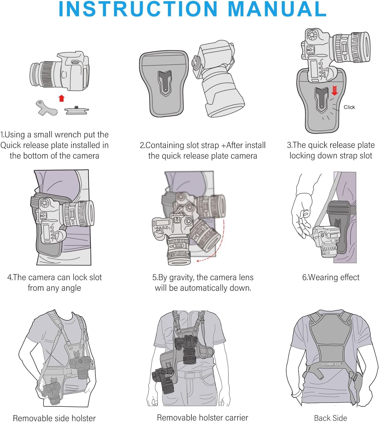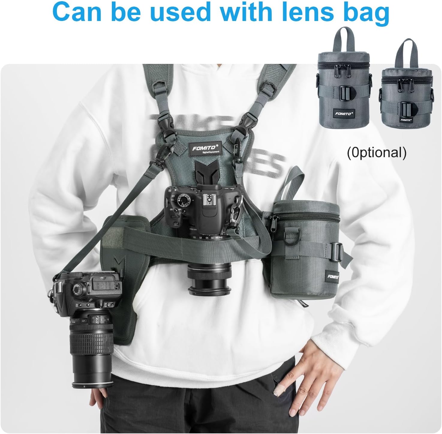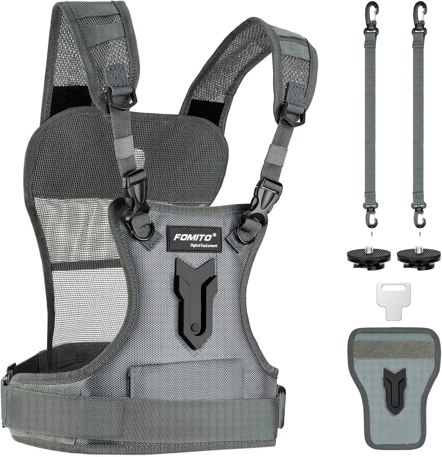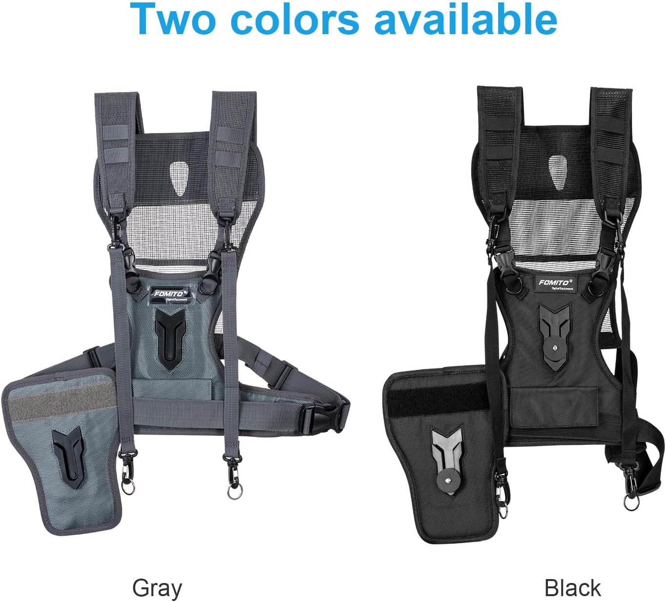 FOMITO Camera Chest Harness System, Multi-Camera Carrying Vest with Side Holster, Grey, Compatible with Canon Nikon Sony Panasonic Olympus DSLR