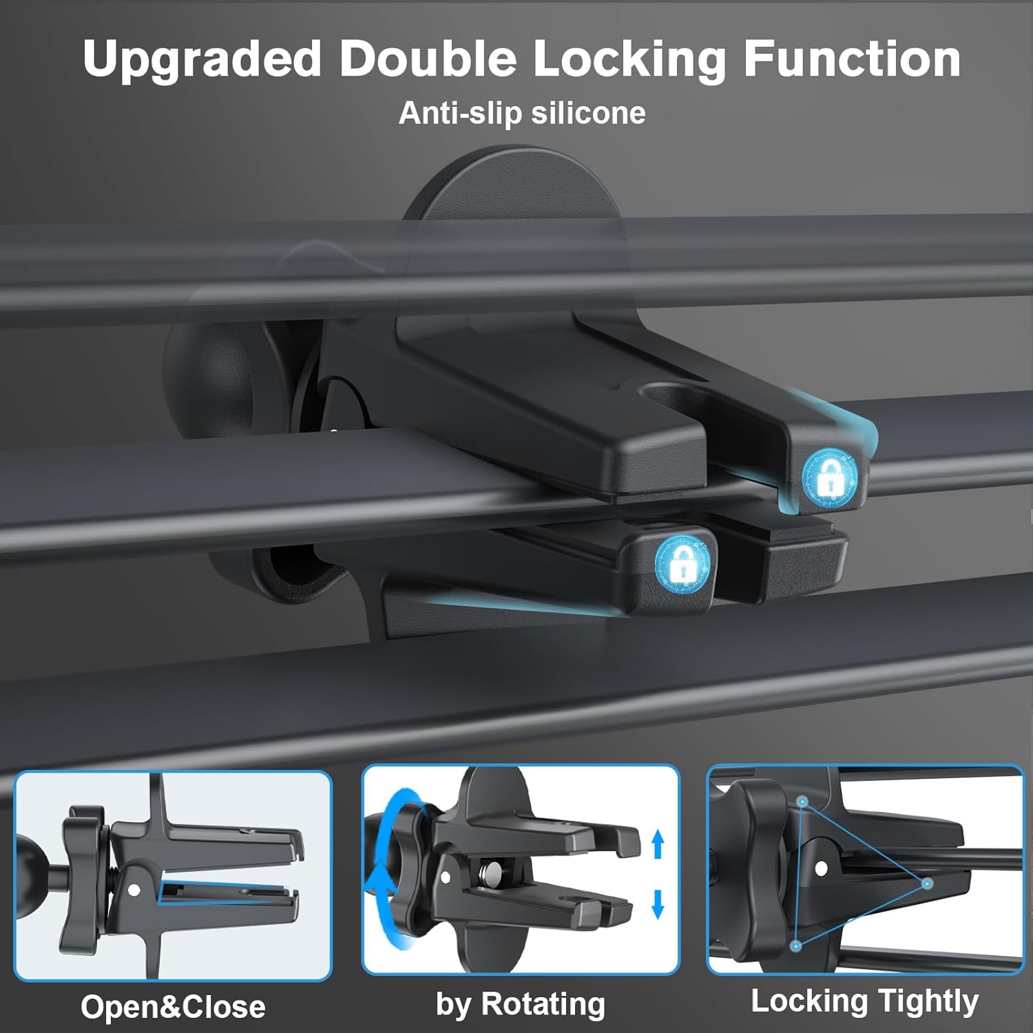 Enhanced clip with double lock and soft silicone pad for air vent protection.