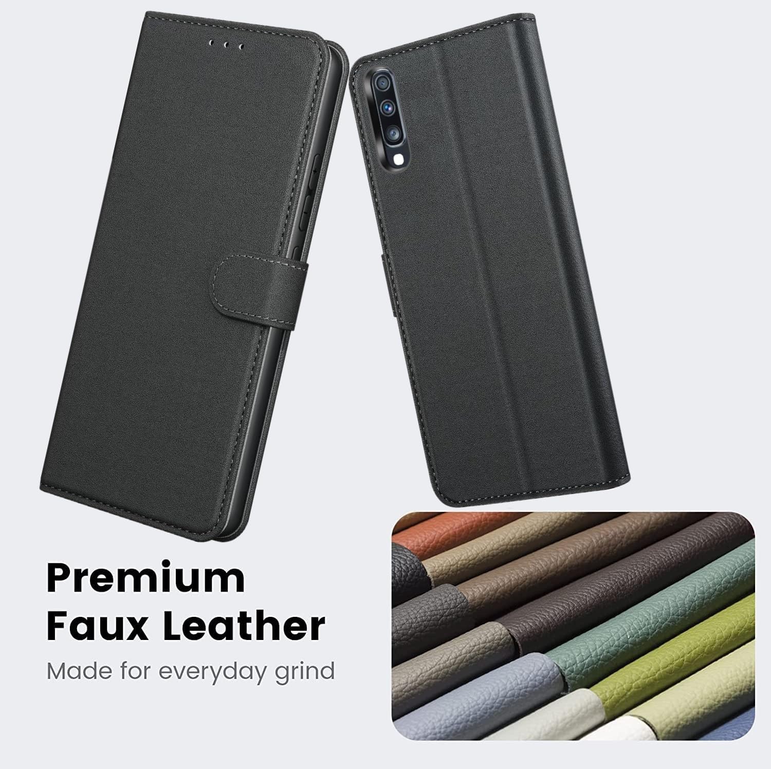 Premium Material: Samsung A50 Professionally Designed Sleek Look High quality PU leather outer material and flexible TPU inner shell cover.
