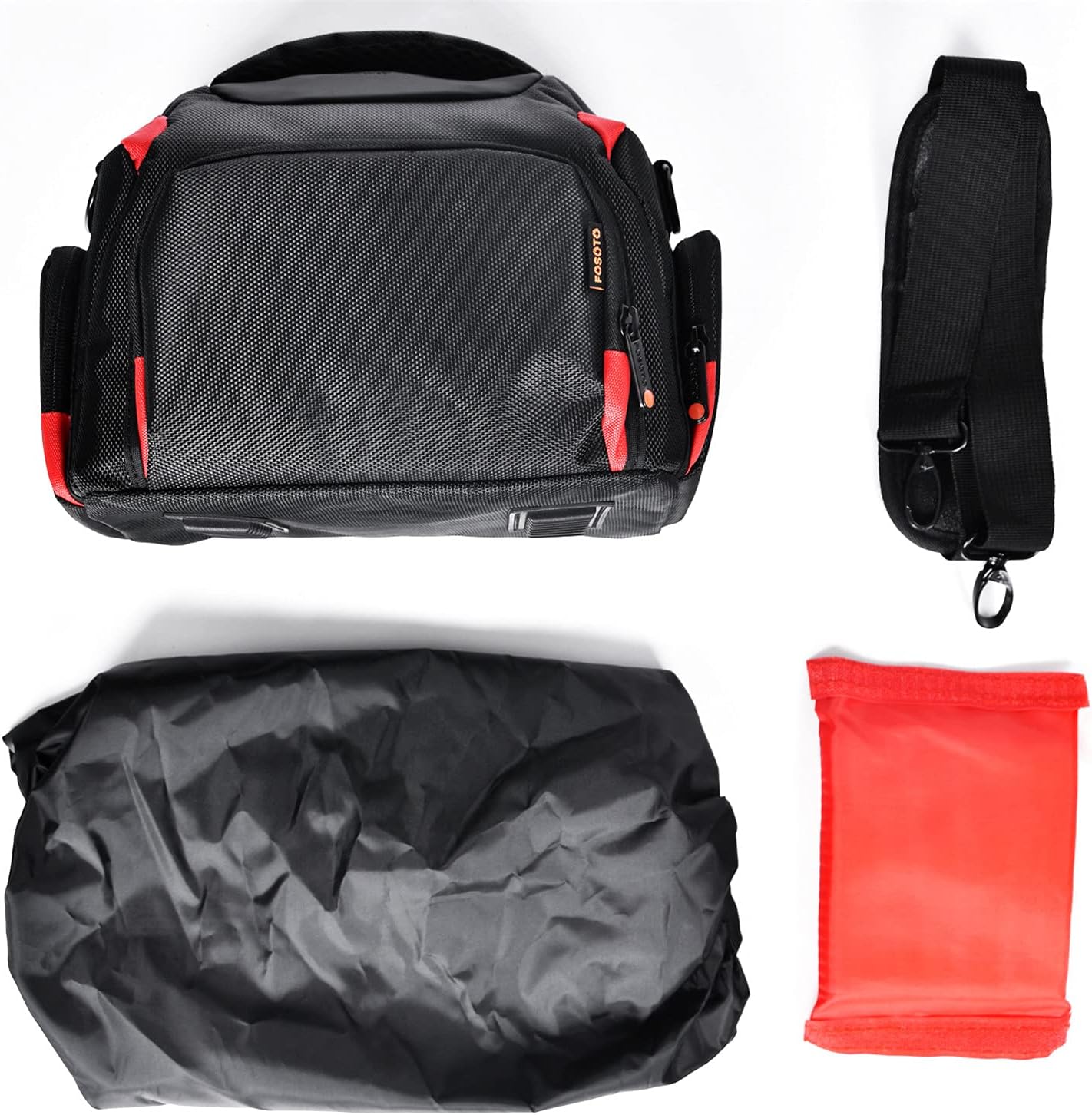 Package included: 1 x Camera bag,1 x Shoulder Strap 1x extra rain cover.Other accessories are not included.