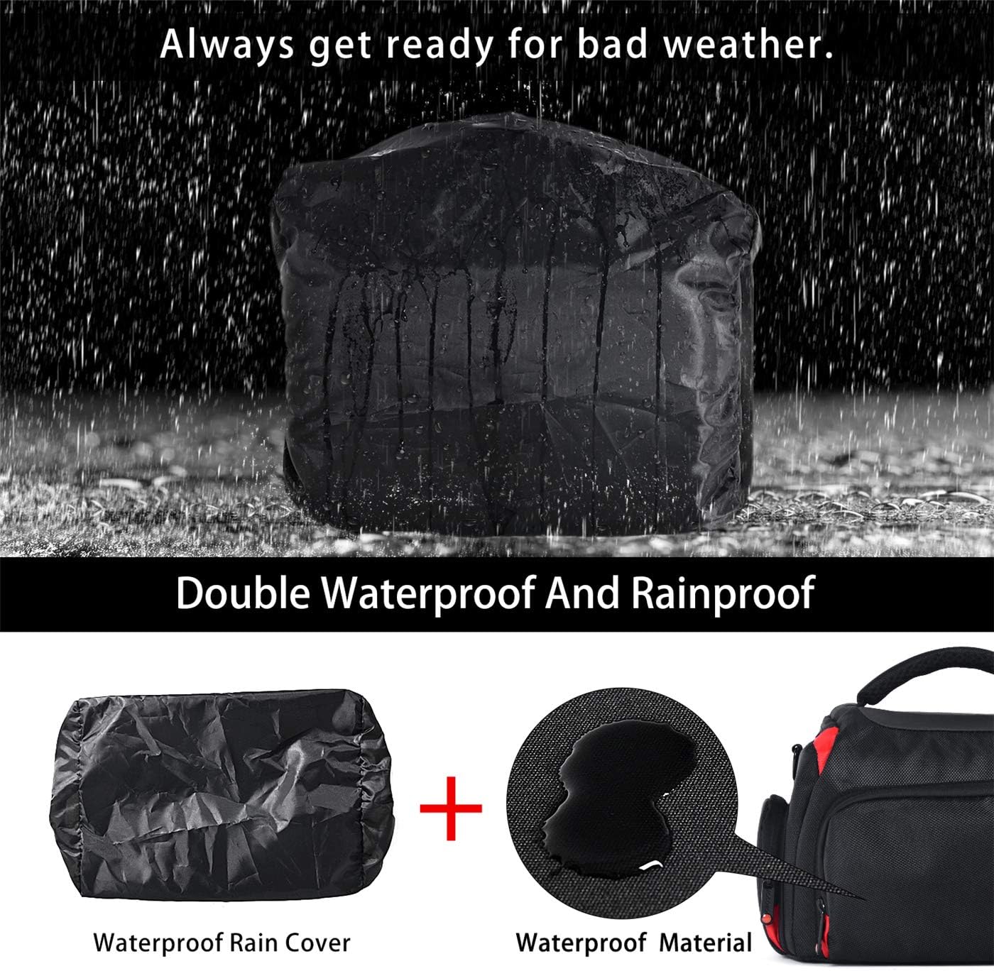 · Made with high density waterproof Nylon exterior, also comes with a extra Rain cover, ensure your camera won’t get wet in a sudden rain or other emergencies.