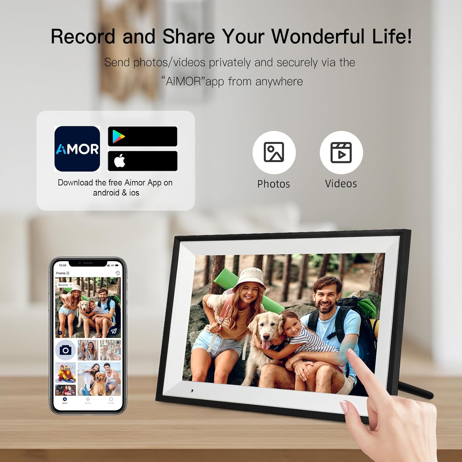 【WIRELESS SHARING VIA APP】App “AiMOR” can work on both Android & iOS phones. You can download it from Google play or App store and connect it with your FUNCARE WiFi digital picture frame. Once done, you are allowed to share photos or short videos (Up to 15sec.) with your loved ones via App for lifetime with zero subscription fee. This electronic picture frame has a variety of customized settings to meet kinds of your needs, such as slideshow, timer, zoom & crop, sleep mode and more!