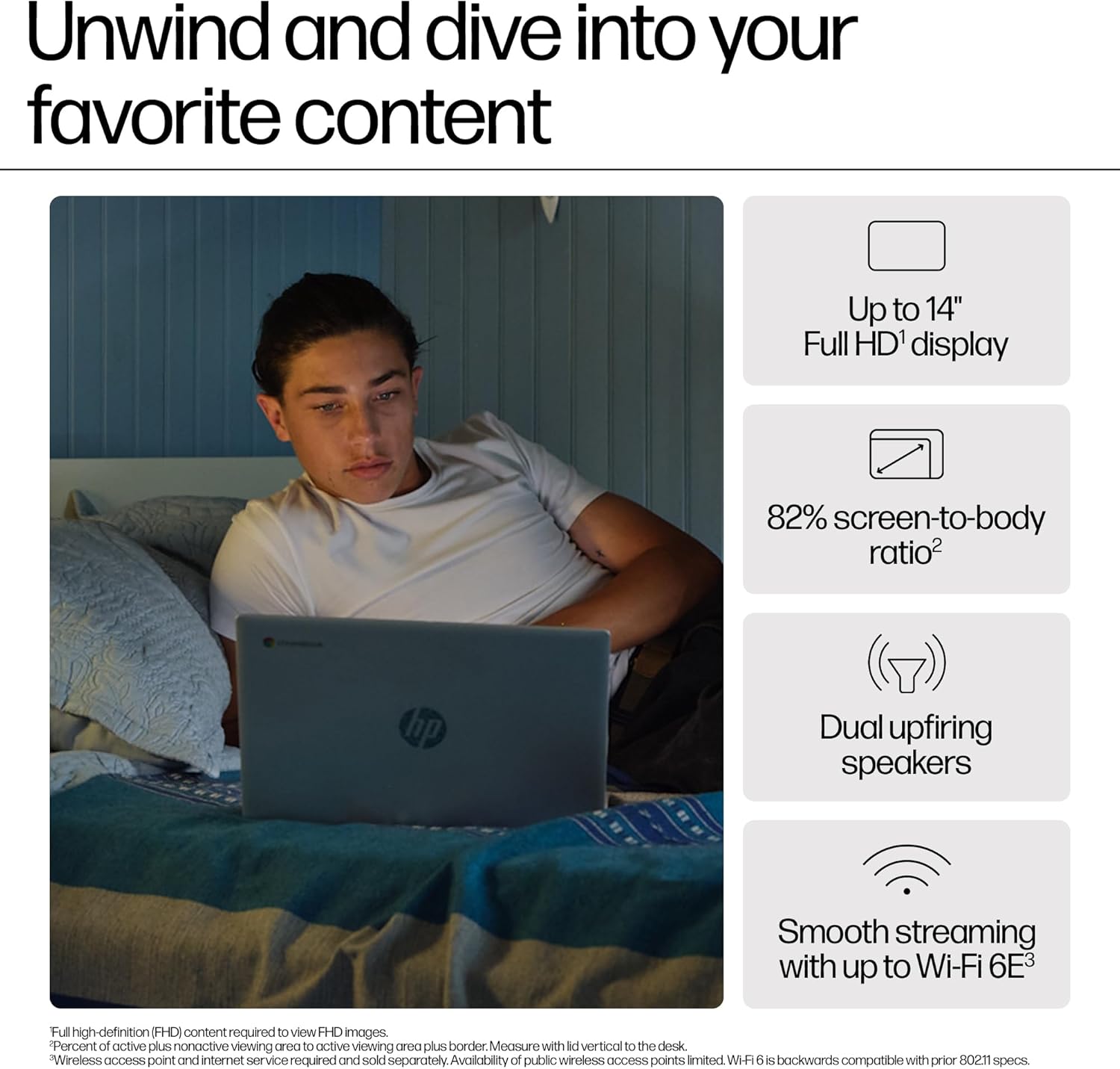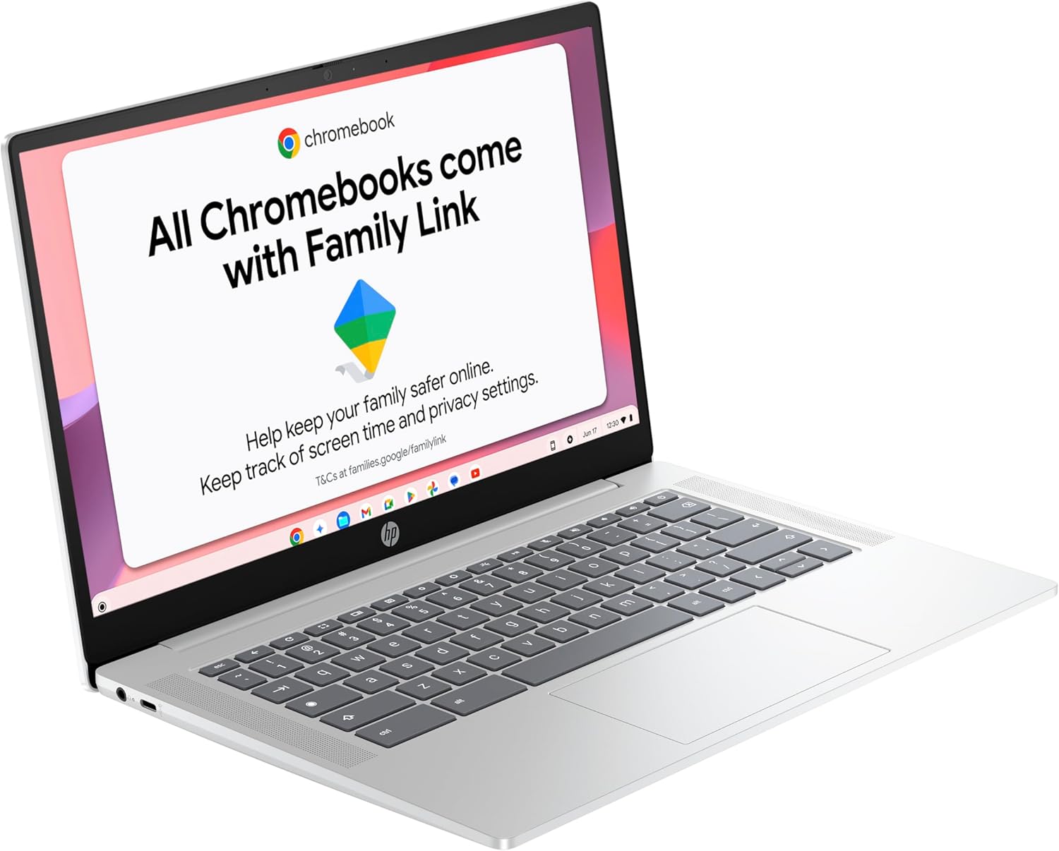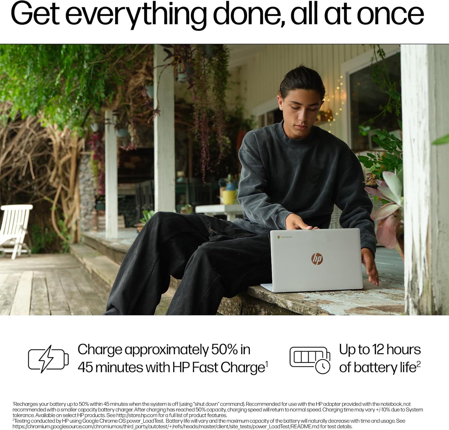 WORRY-FREE PERFORMANCE AND ENTERTAINMENT: Stay productive and worry-free with the HP Chromebook 14”, packed with the performance of up to an Intel processor and the easy to use Chrome OS. Do more with plenty of memory, faster speeds, and wireless connectivity and enjoy faster boot and long battery life with HP Fast Charge so you can stay connected all day.
