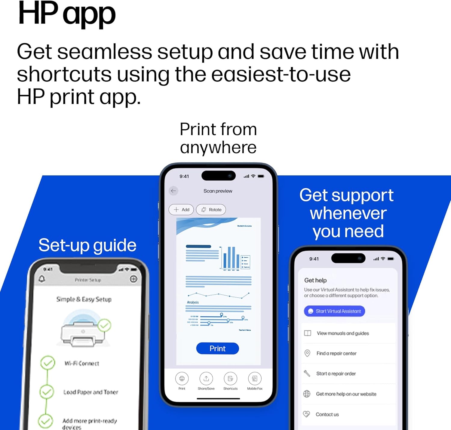 PRODUCTIVITY FROM YOUR PHONE: Save time with seamless setup using the easiest-to-use HP app plus organize documents for printing 50% faster with time-saving shortcuts