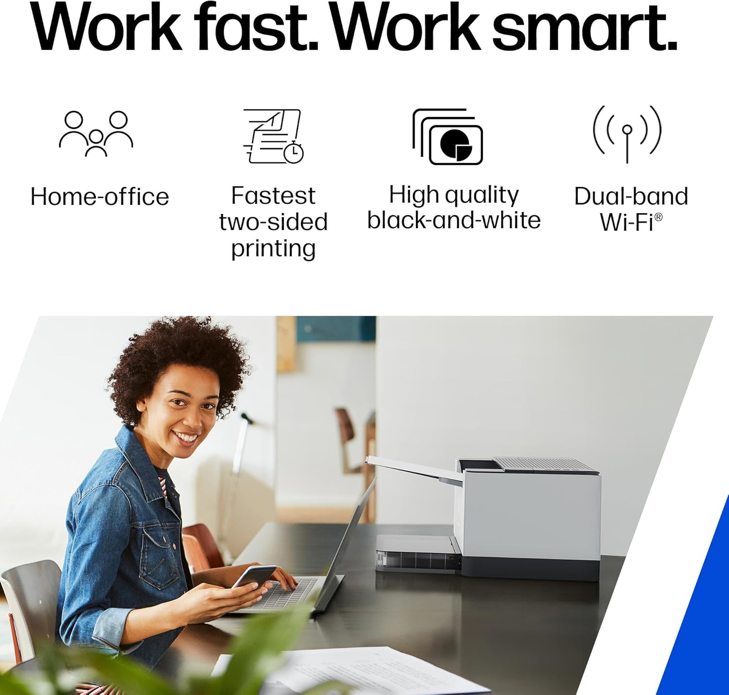FAST AND RELIABLE WIRELESS LASER PRINTING: The fastest two-sided printing in class. Blazing fast automatic two-sided black and white printing at up to 19/18 (Letter/A4) duplex pages per minute