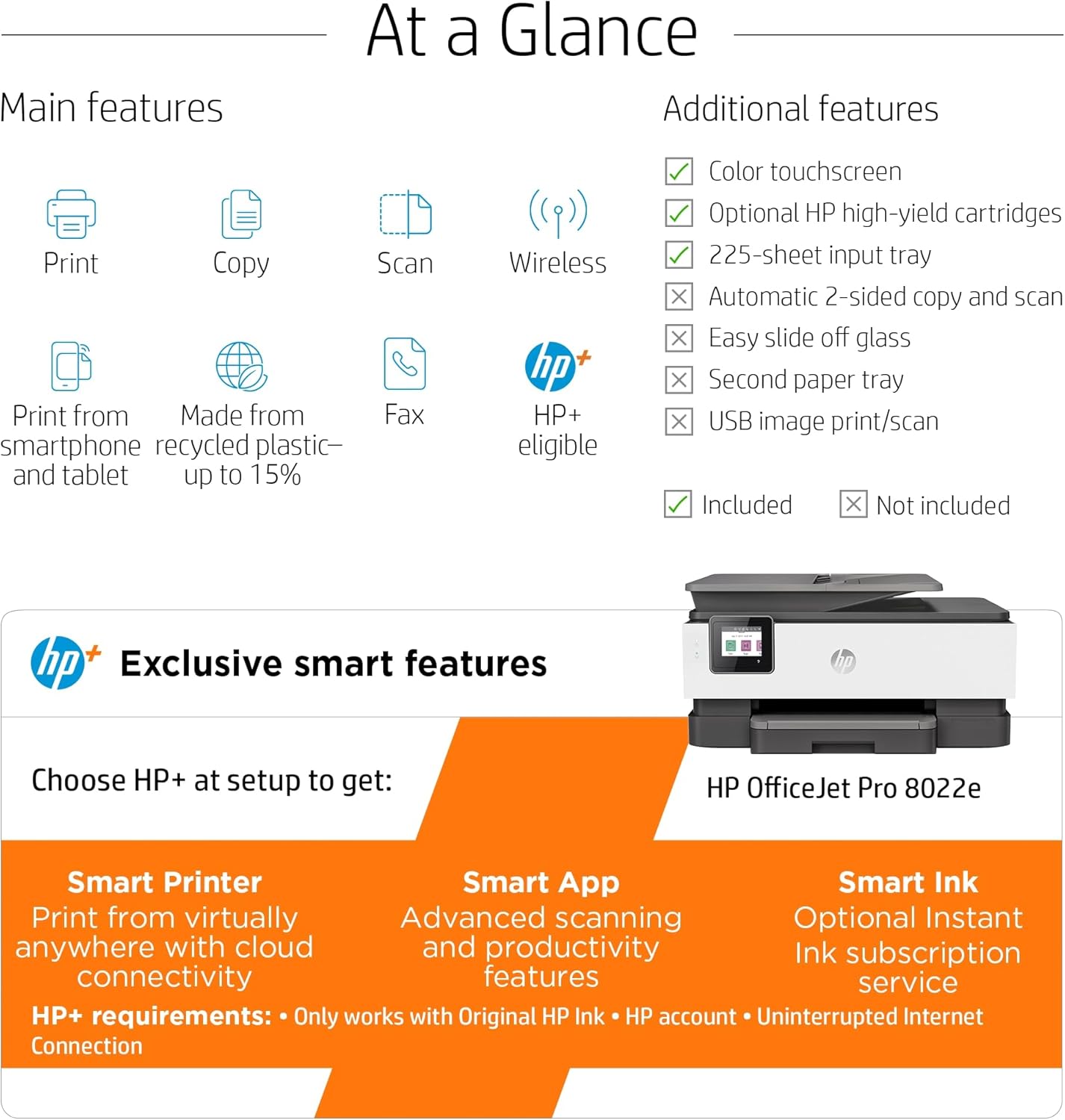 HP+ SMART PRINTING SYSTEM – The optional HP+ system enables your printer to think ahead so it is more secure, more productive and ready when you are. Requires an HP account, internet connection and use of only Original HP Ink for the life of the printer