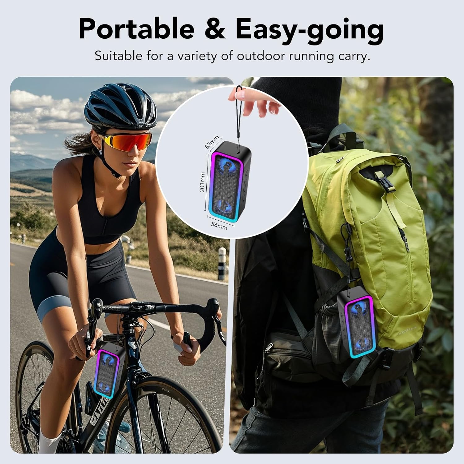 【7 Color RGB Timing Lights for Unforgettable Parties】The portable speakers wireless bluetooth is not only a speaker, but also equipped with 7-color RGB timing lights. The dynamic LED light shows synchronize with each low beat, enhancing the mood at any party and making it an unforgettable experience. The lights can also be switched off at any time as required.