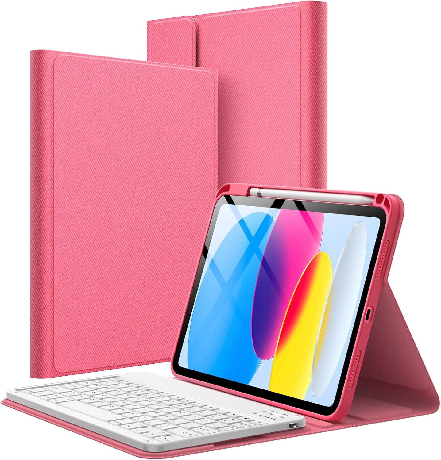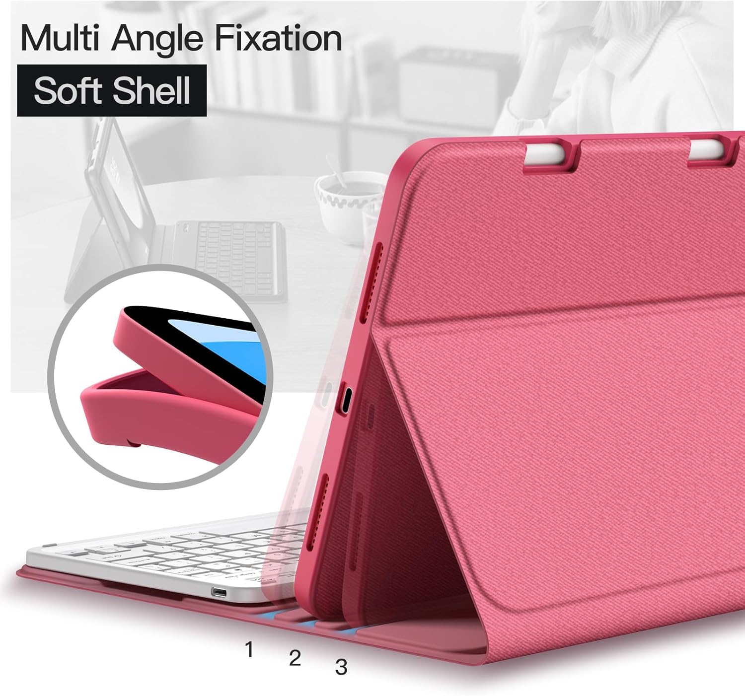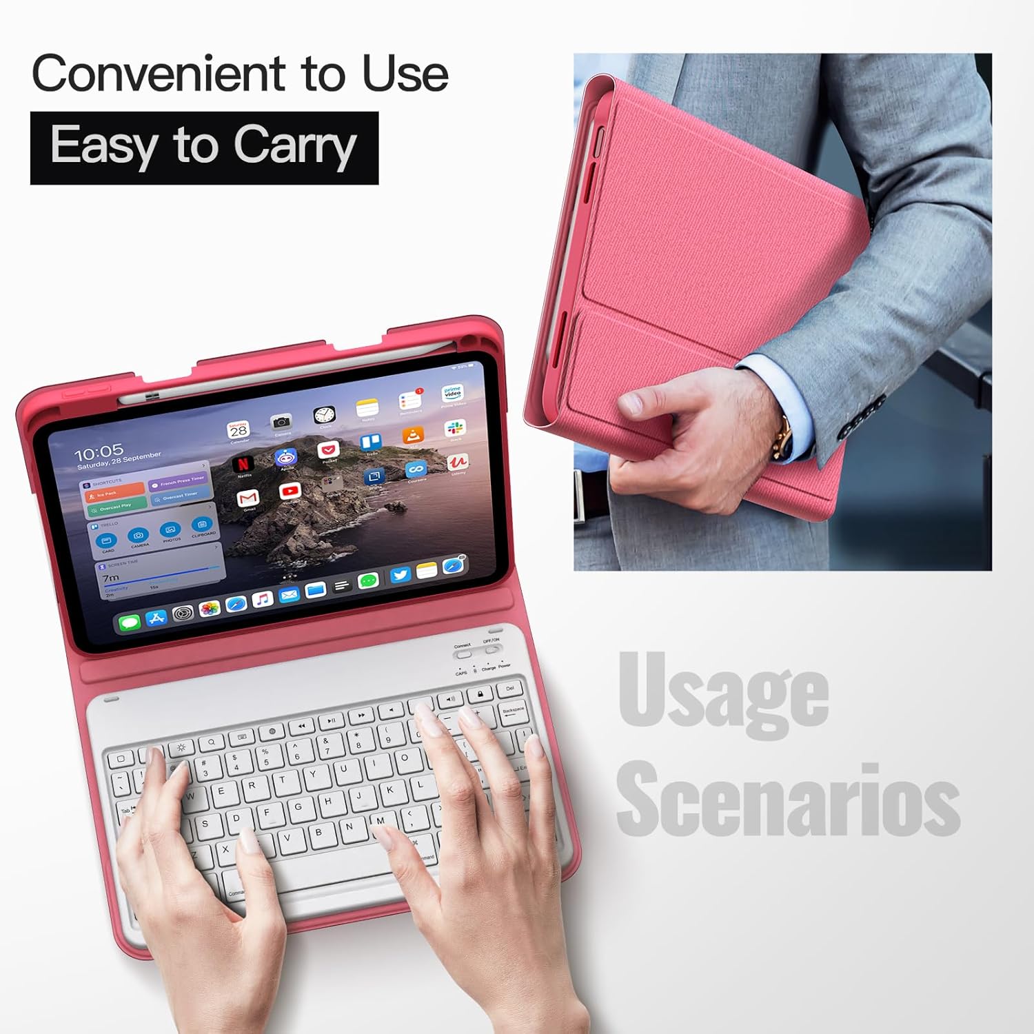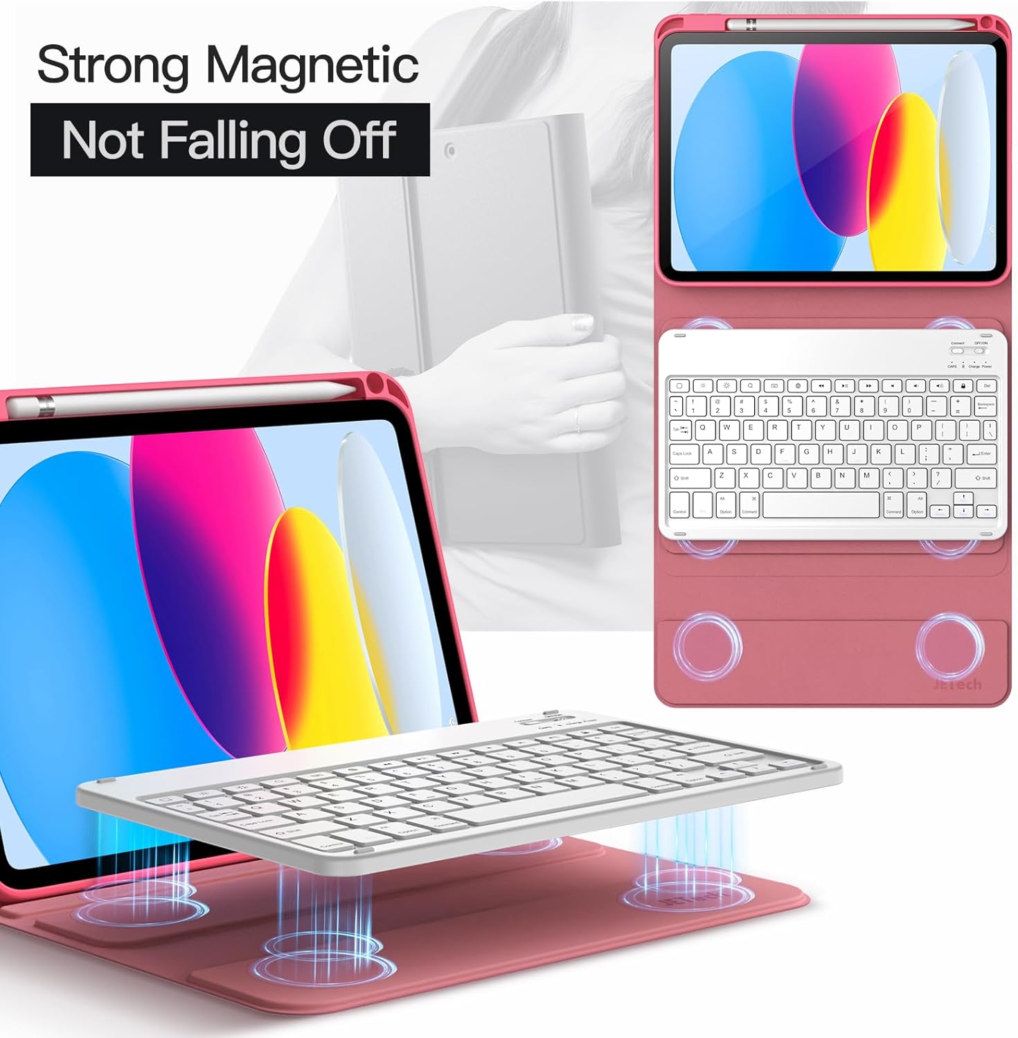 [Magnetic & Detachable Keyboard] The keyboard with easy-to-operate keys and stable Bluetooth connection can be attached to the cover with strong magnets, instantly turning your iPad into a laptop mode to improve the efficiency of working, learning or gaming. No fear of a sudden slide and you can remove it when not in use